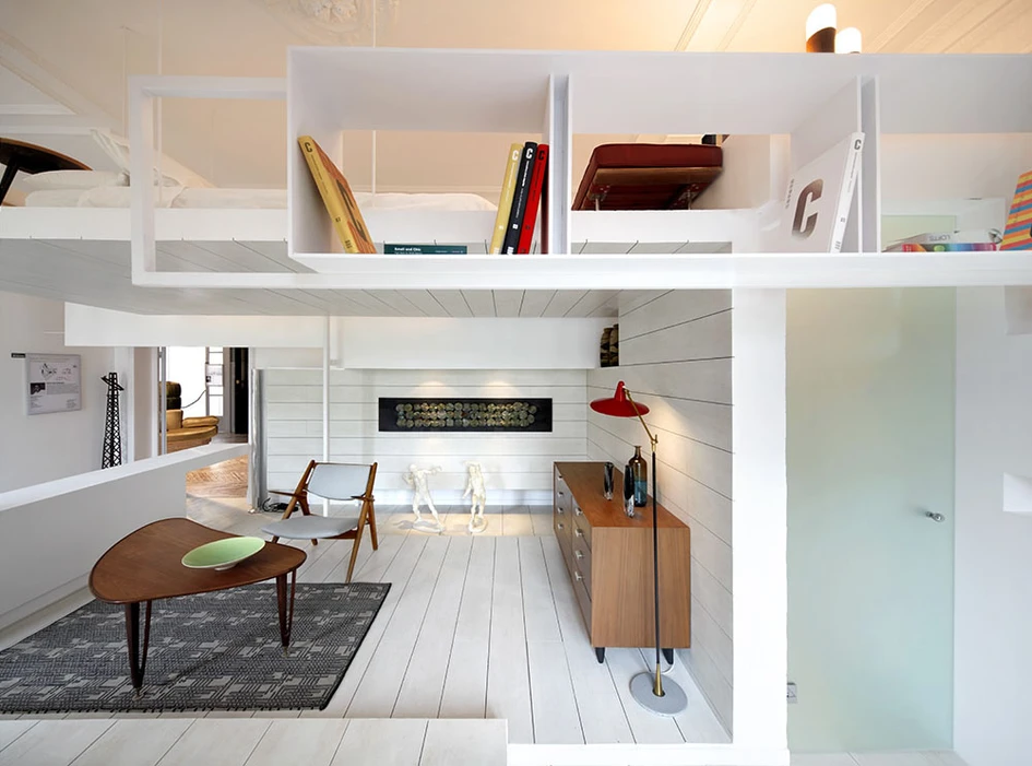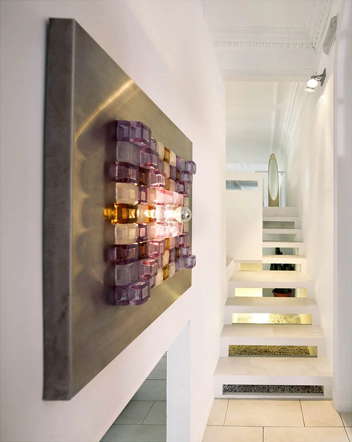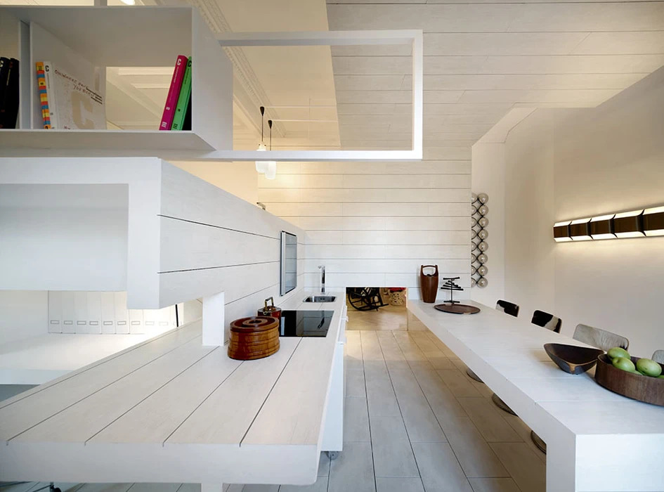 In the attic of an emblematic building of classical early 20th century Madrid, this new concept of living space is placed: UNLIMITED SPACE is presented by architect Héctor Ruiz-Velázquez and built out of total freedom of layers. As if the design would be a three-dimensional object, every one of the rooms or points of the home can be located by specifying the axis of coordinates.