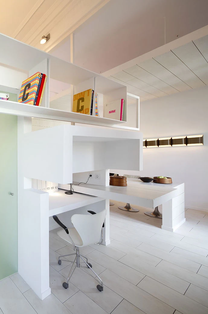 The spatial flexibility that transforms this home is an innovative housing concept which adapts itself to the actual necessities and to the new usages. Where roominess, brightness and time flow in a multifunctional space without corners or precedence. It is also about expanding the parameters of interior design as well as the conventional trends of arrangement.