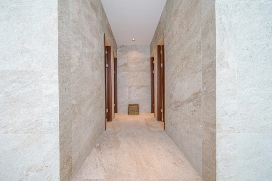 In this heavenly setting, the stone-effect tiles of Atlas Concorde used to decorate the floors in several areas of the beach club add a touch of Made in Italy to the building. The area adjacent to the beach consisting of swimming pools, bars and relaxation areas thus takes on an allure with a timeless appeal.