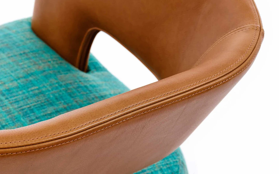As can be expected from the long tradition of Durlet’s workmanship, this design ensures the highest levels of sitting comfort. The backrest is open at the bottom but offers perfect support. The rounded springs guarantee an extremely pleasant sitting experience. The ornamental seams highlight the lines of the model and visually finish the item as a whole. Materials and colours can also be combined to create unique effects. BEBOP is a hero that will feel at home both in a residential environment as in the lounge of a restaurant or the lobby of a hotel or office.