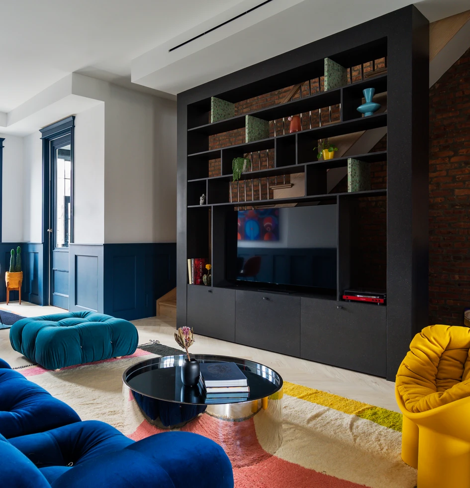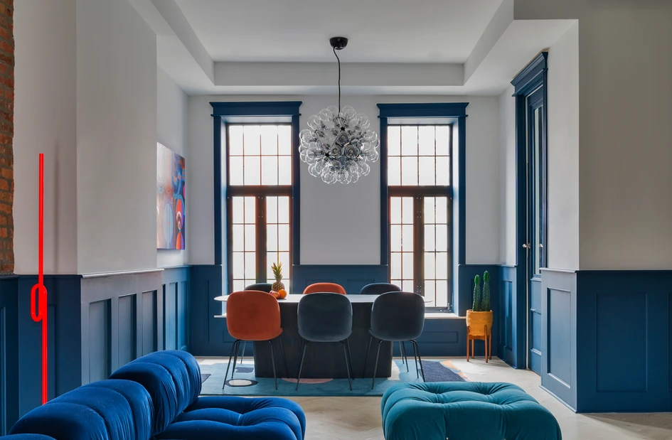 Olbos Studio completes the first part of a late 1800s Bed-Stuy townhouse renovation for a cosmopolitan couple. The traditional grungy bricks become the backdrop for this surprisingly colorful yet elegant interior project, where the conversation between the clients - a lawyer from Singapore with a passion for tattoos and a strategist from Hong Kong with a background in fine arts - and the Italian designer led to a playful space that brings joy and serenity at once.
