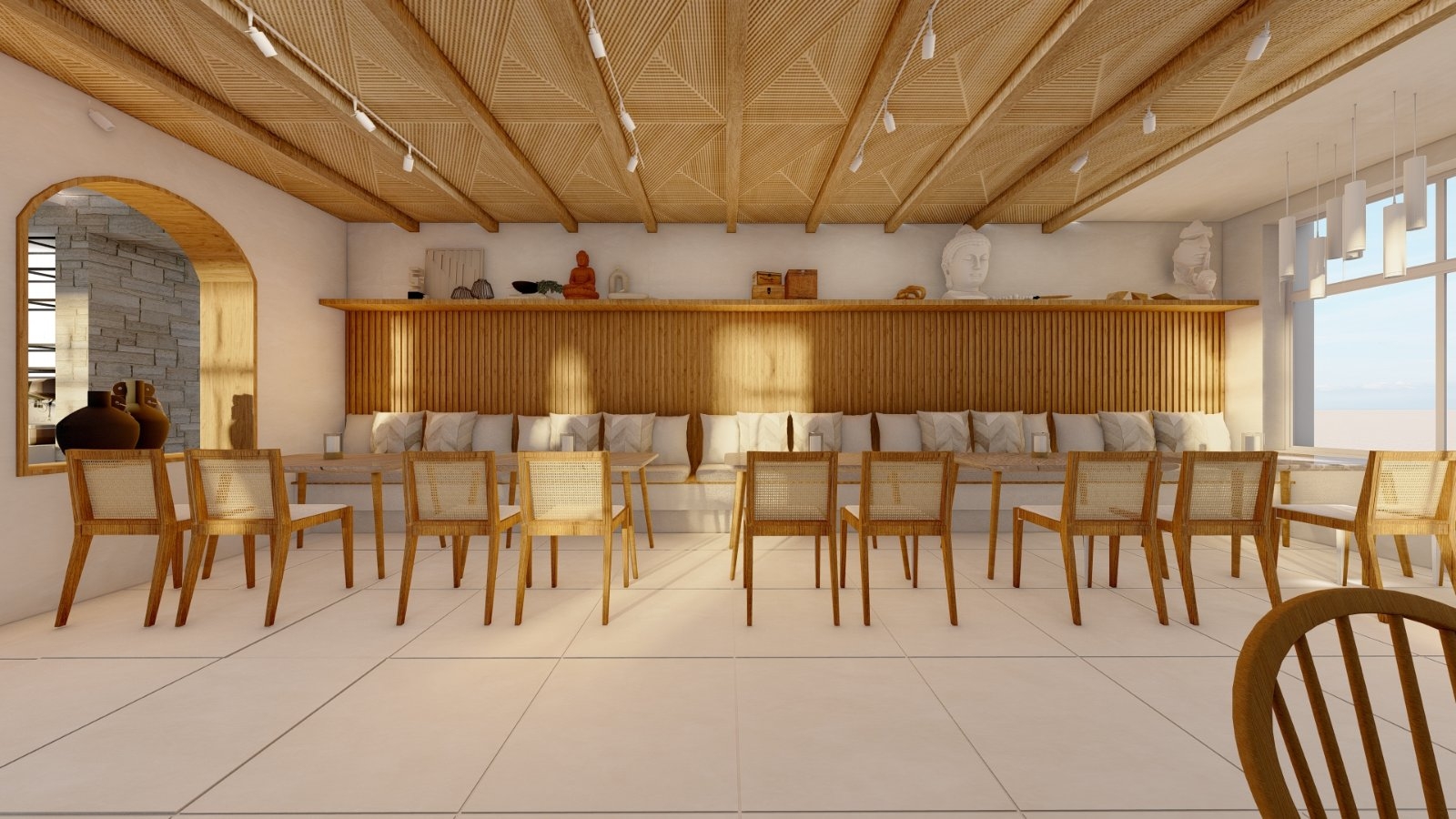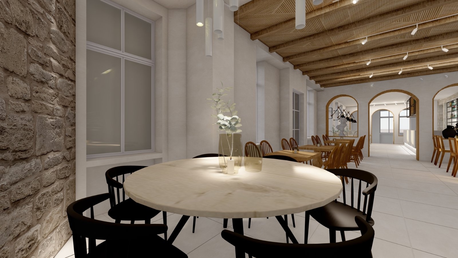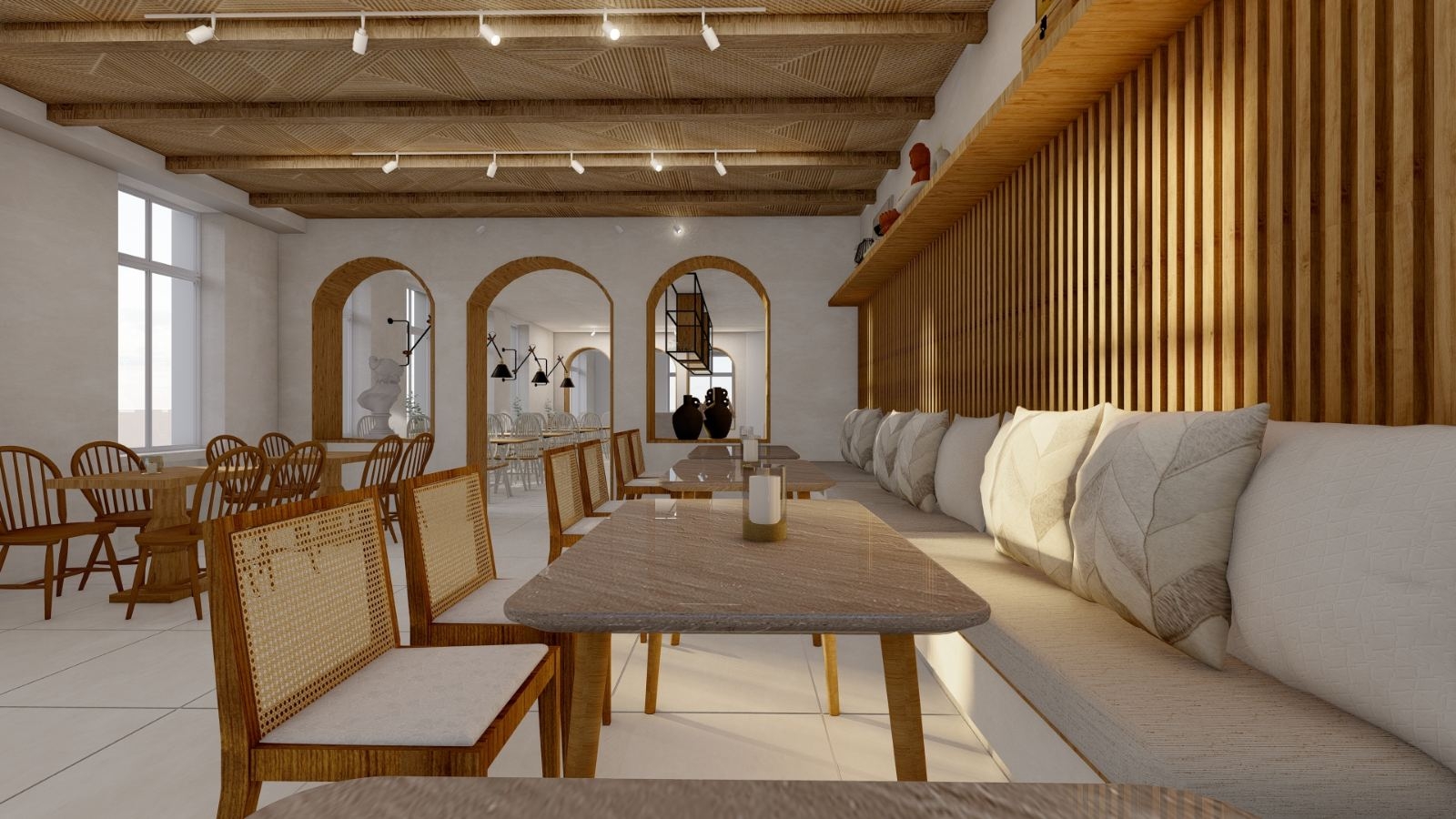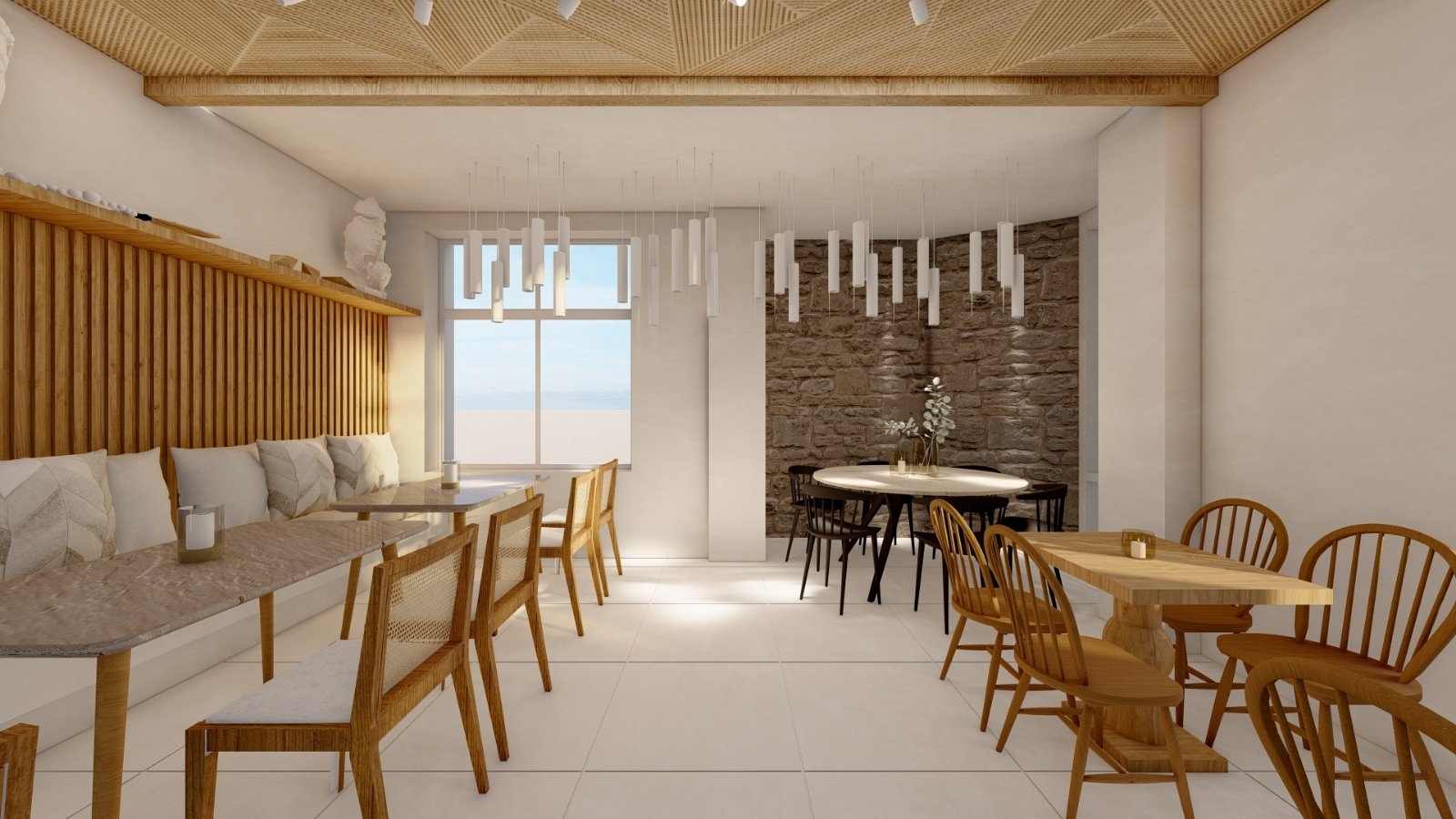Curved windows and central entrance are welcoming the visitor of this traditional restaurant that, through the material used, reminds of an easy-go architecture without exaggerations.
