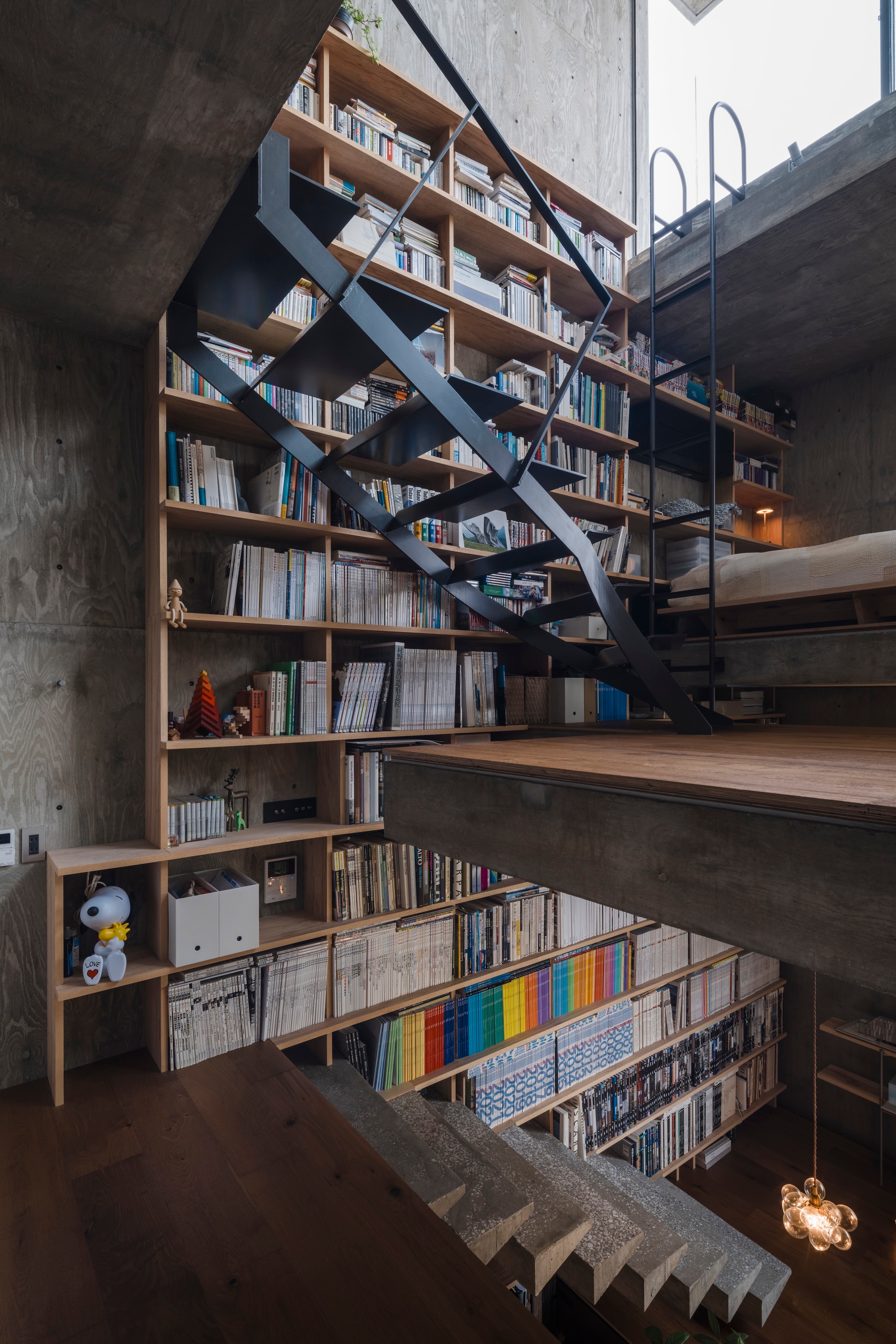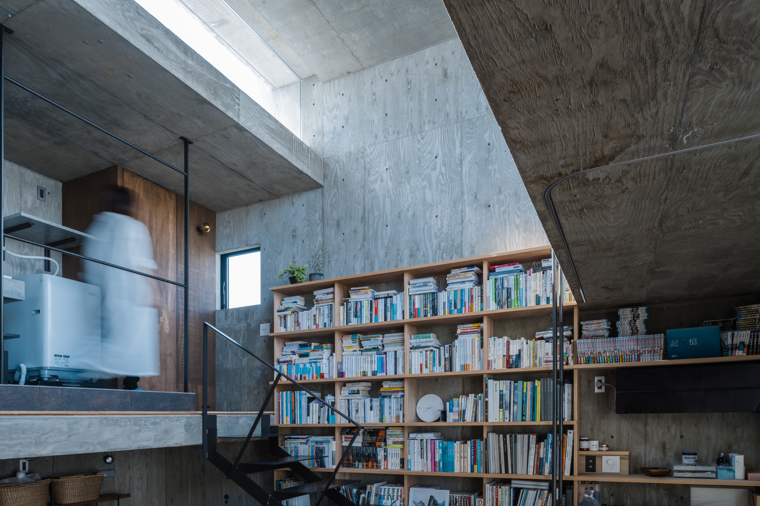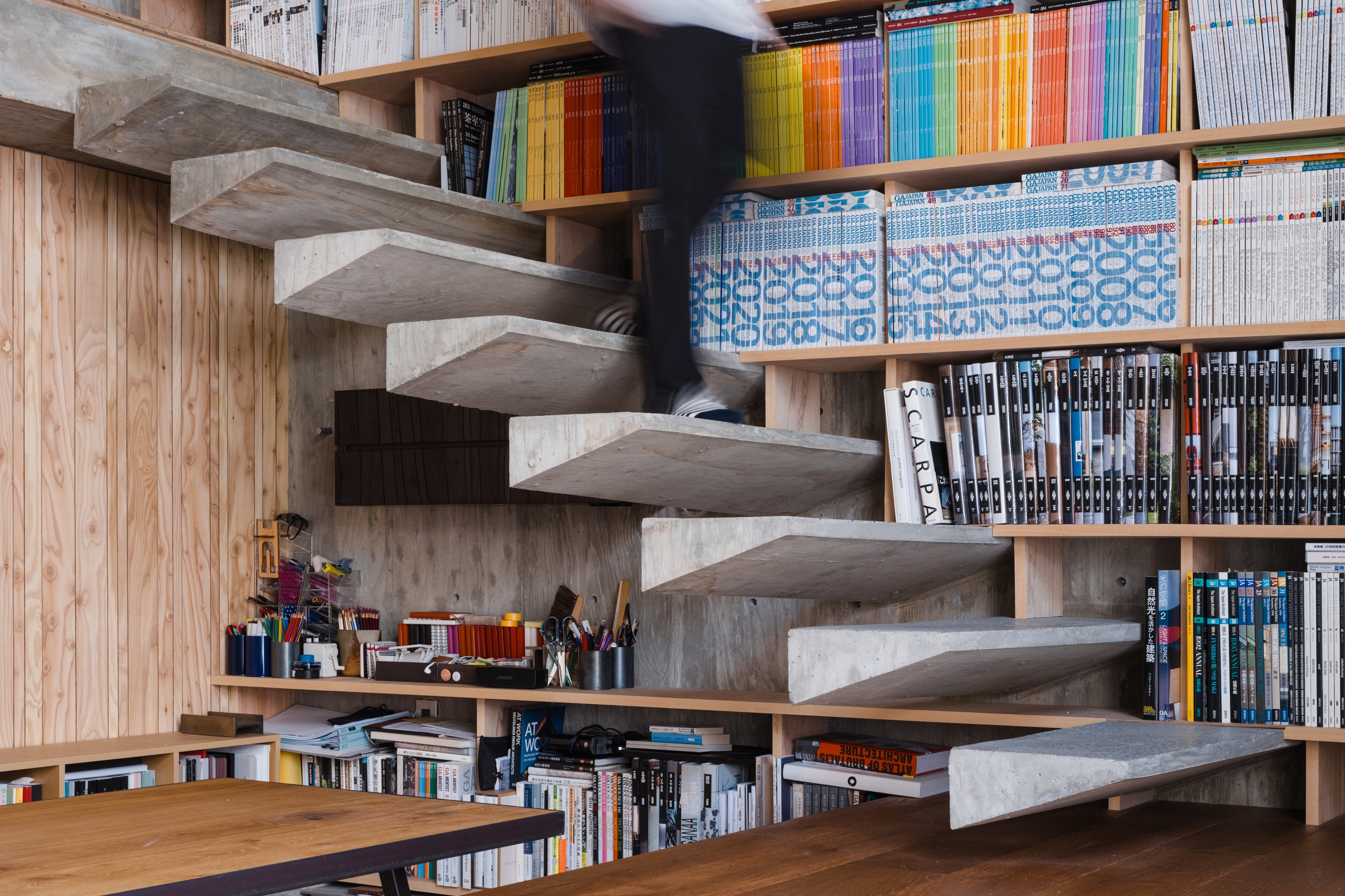The floors do not fully function with one piece alone, as for how small each is, but it shows its complete potential when used along with other displaced floors. It turns into a seat, table, shelf, and ceiling. Almost no place has dedicated use, and the entire space in the house is made with the relationship of misaligned floors. First, entering from the front door and, as it proceeds up, gives a sense of gradational shifts in the space. By placing human-scaled stairs and furniture inside a strong and large ancient building-like structure of reinforced concrete, the building is suited for human use. Moreover, it aims to create an affluent experience that exceeds that of its functional suit alone.