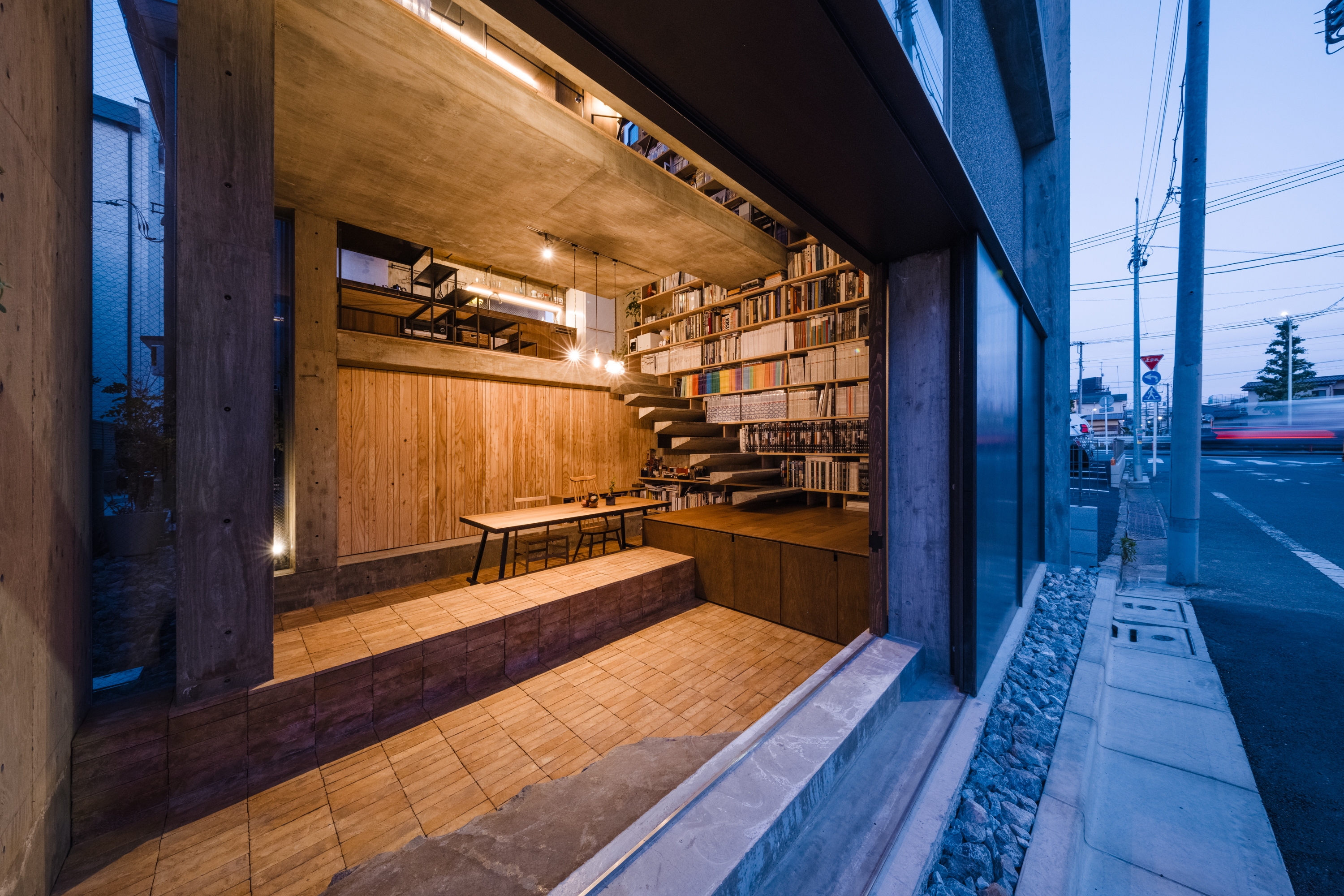This small architecture is one big room. There is not much separation wall inside, and the floor creates the space, building frame walls and steps. The house is for a married couple. They have vague boundaries between their private and work life. Therefore, they imagine a house where they can work anywhere and where they can sense the presence of each other wherever in the house. With such a lifestyle, rather than having small spaces for compact living, the house was designed to have large air volume and scale, making various interactions of inside and outside space. This led to the idea of the house of frame, which is strong but flexible; it allows a liberal way of living.