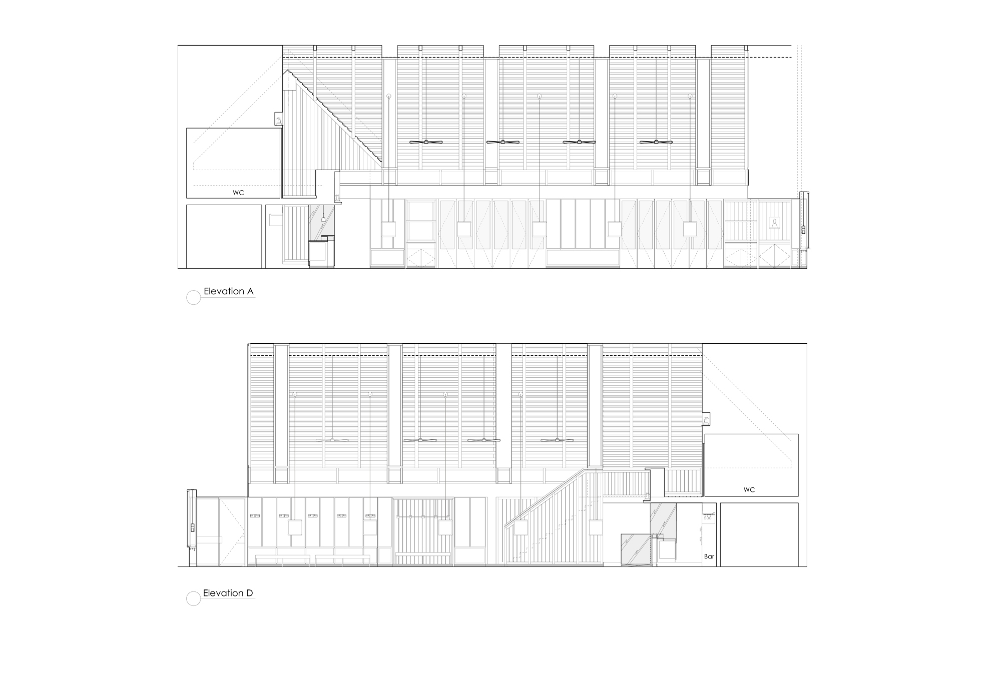 However, the more unusual aspects of the project regard its approach to the façade. This included a area of new construction providing a terrace with an operable roof that allows outdoor dining in warm weather as well as using a heat reclaim system from the kitchen to heat the external area.
