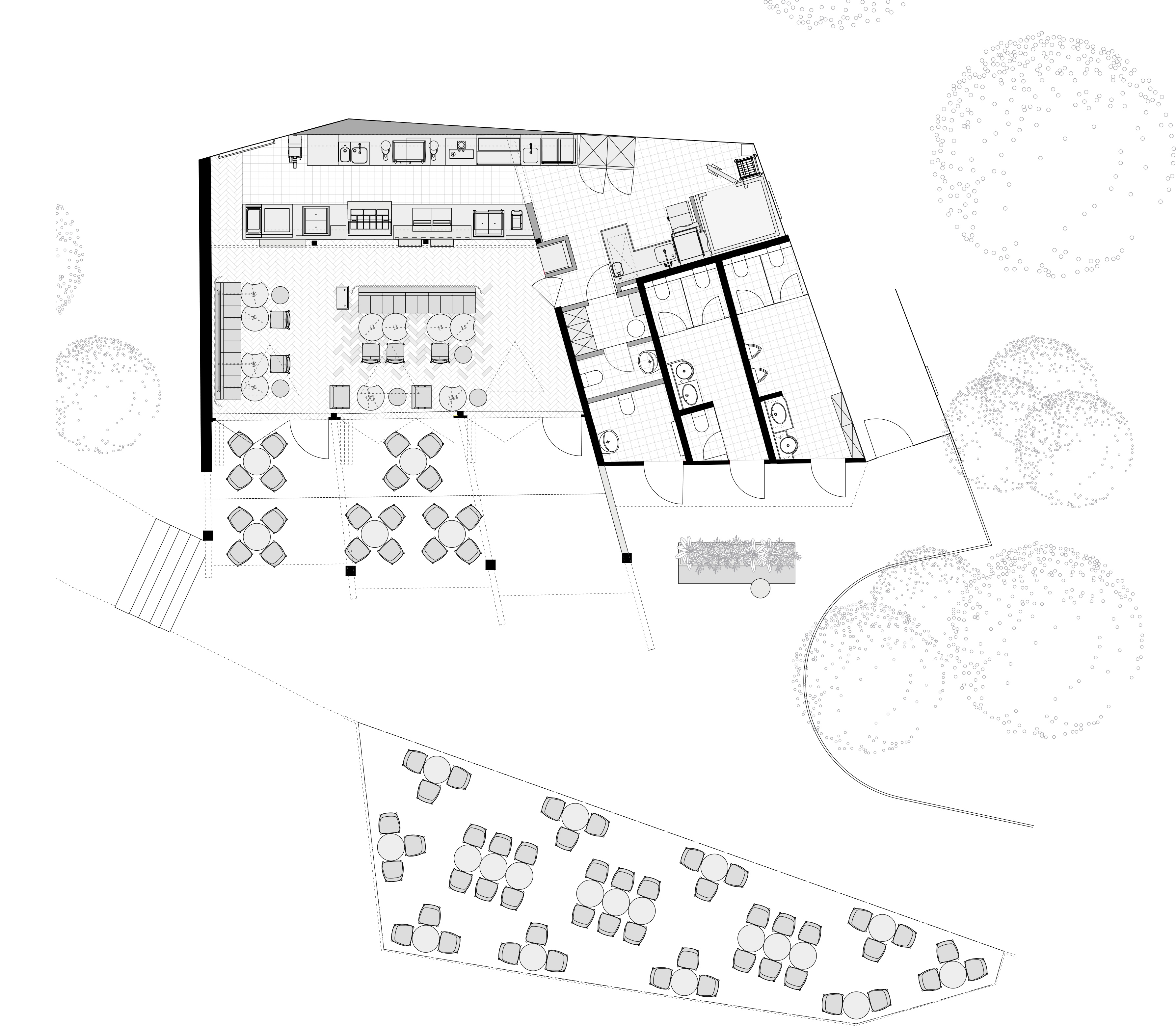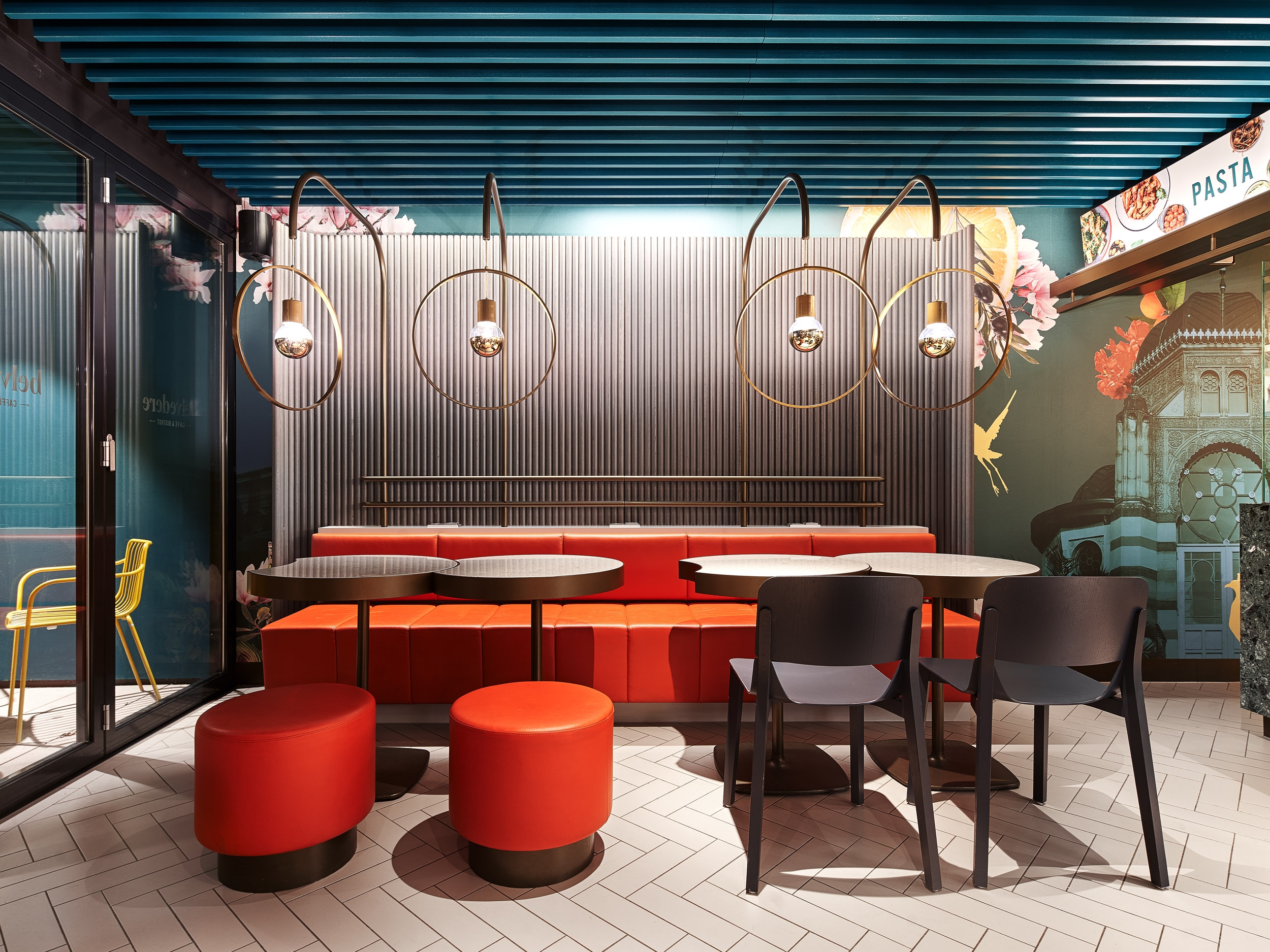 Nestled between aviaries and greenhouses, right next to the Moorish Pavilion, is a small sanctuary for snacking and relaxing. The concept behind the café was primarily about bridging the gap between sophistication and simplicity: with the long tradition of the Wilhelma reflected in the ambience as much as the down-to-earth character of its guests. The result is a stylish yet welcoming Italian café slash restaurant where the whole family will feel at home. The space is designed in such a way that guests are directed straight towards a counter where drinks are displayed next to savoury and sweet temptations. One culinary highlight is the pasta, which is freshly prepared here for everyone to see.