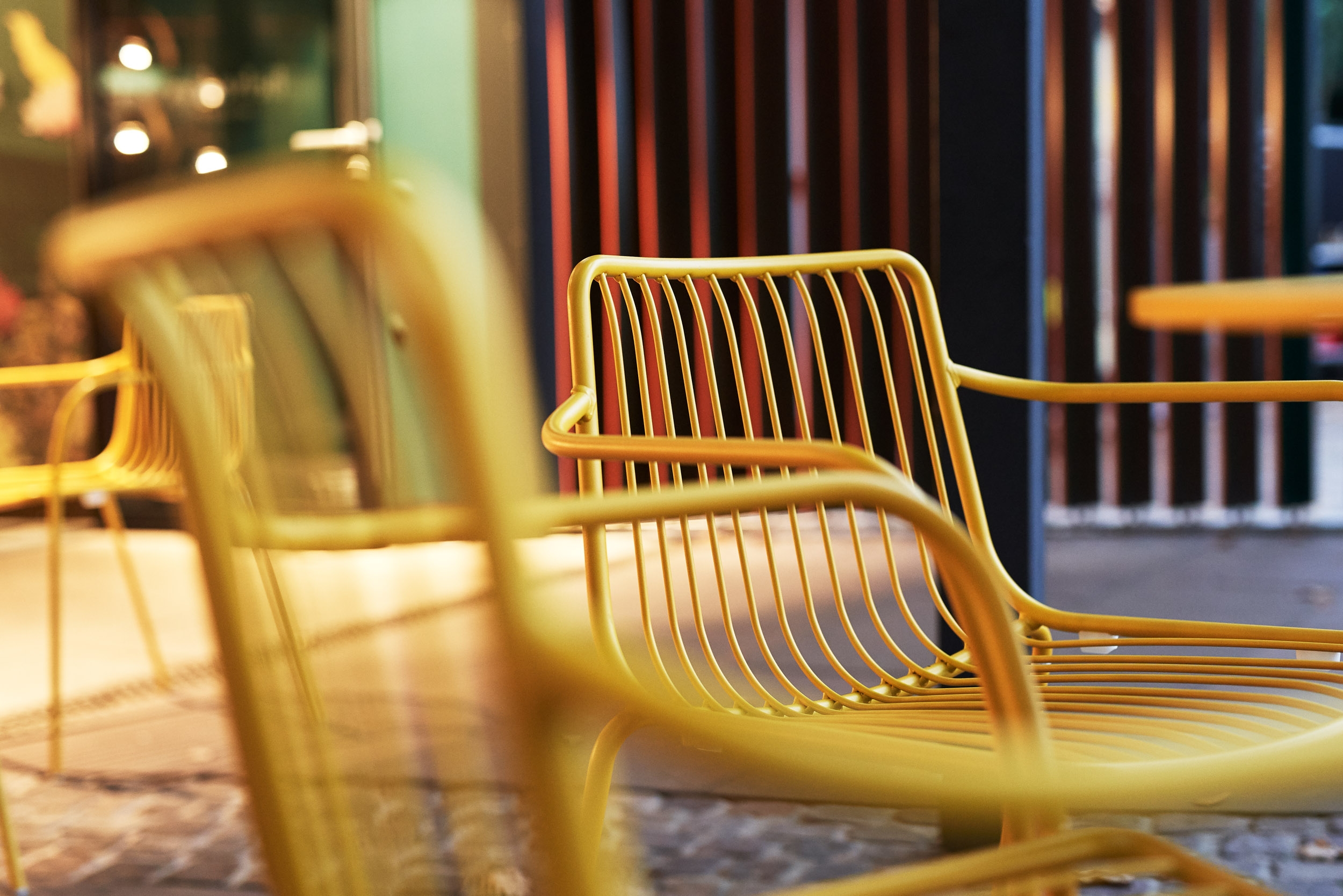 As the name suggests, there are lots of beautiful things to see here. Such as the house peacock, who regularly visits to marvel at the complete transformation of the 1960s listed building: From the friendly lemon yellow of the terrace chairs that reappears in the form of actual lemons on the walls, every detail has been lovingly considered and designed. Traditional Italian elements infuse the room with gioia di vivere, while the orange-upholstered diner bench appears as a monument to nonchalance at the very heart. Indoor swings complete the lightness of touch – and are great for occupying fidgety children before setting off to visit the leopards and the tapirs.