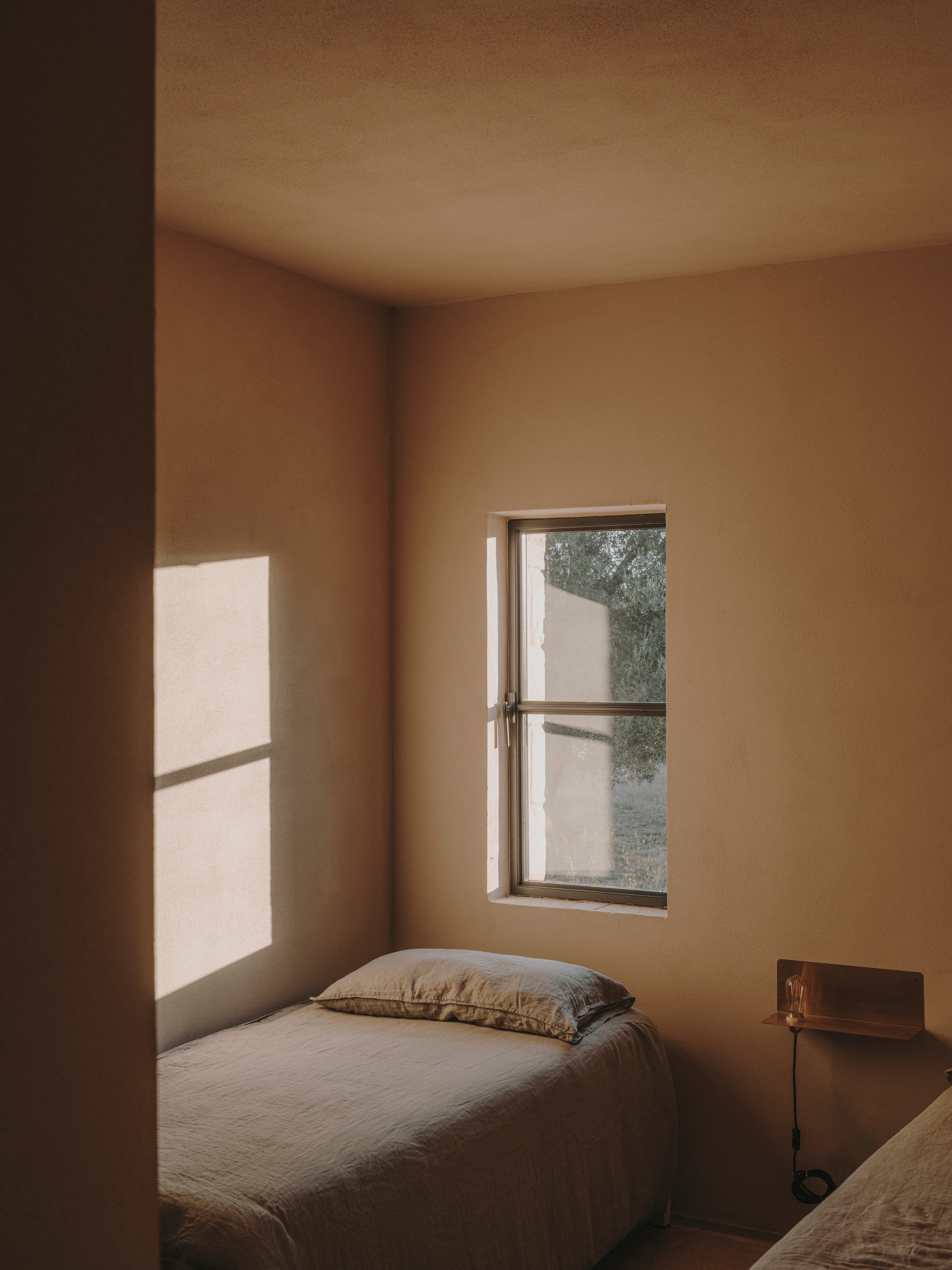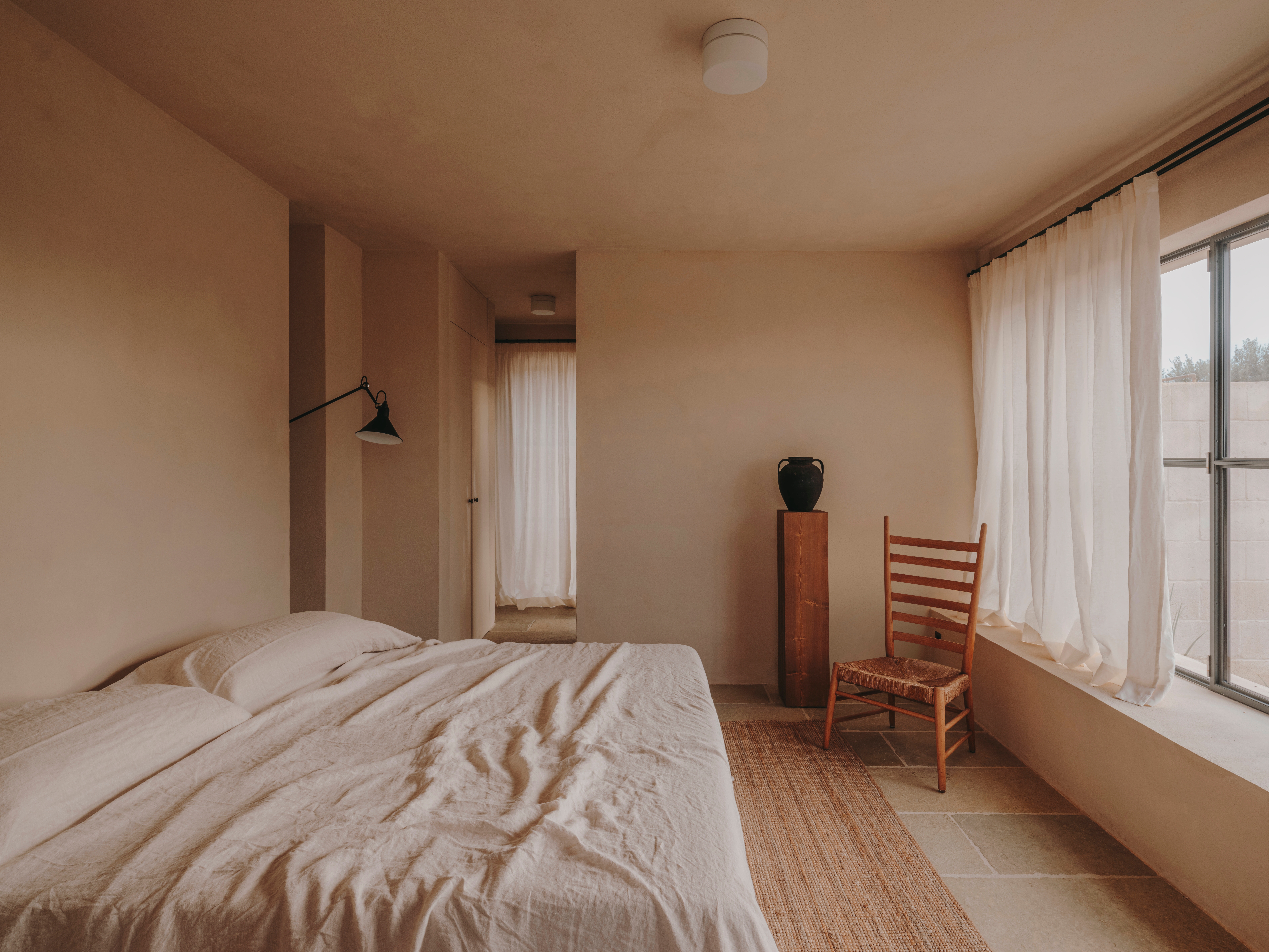 In terms of materials, the house was built out of tufo, the local sandstone. A beautiful limestone with different shades of green and yellow was laid throughout the whole interior of the house, and a completely natural powdery pink lime wash was used to paint both the interior and exterior walls.