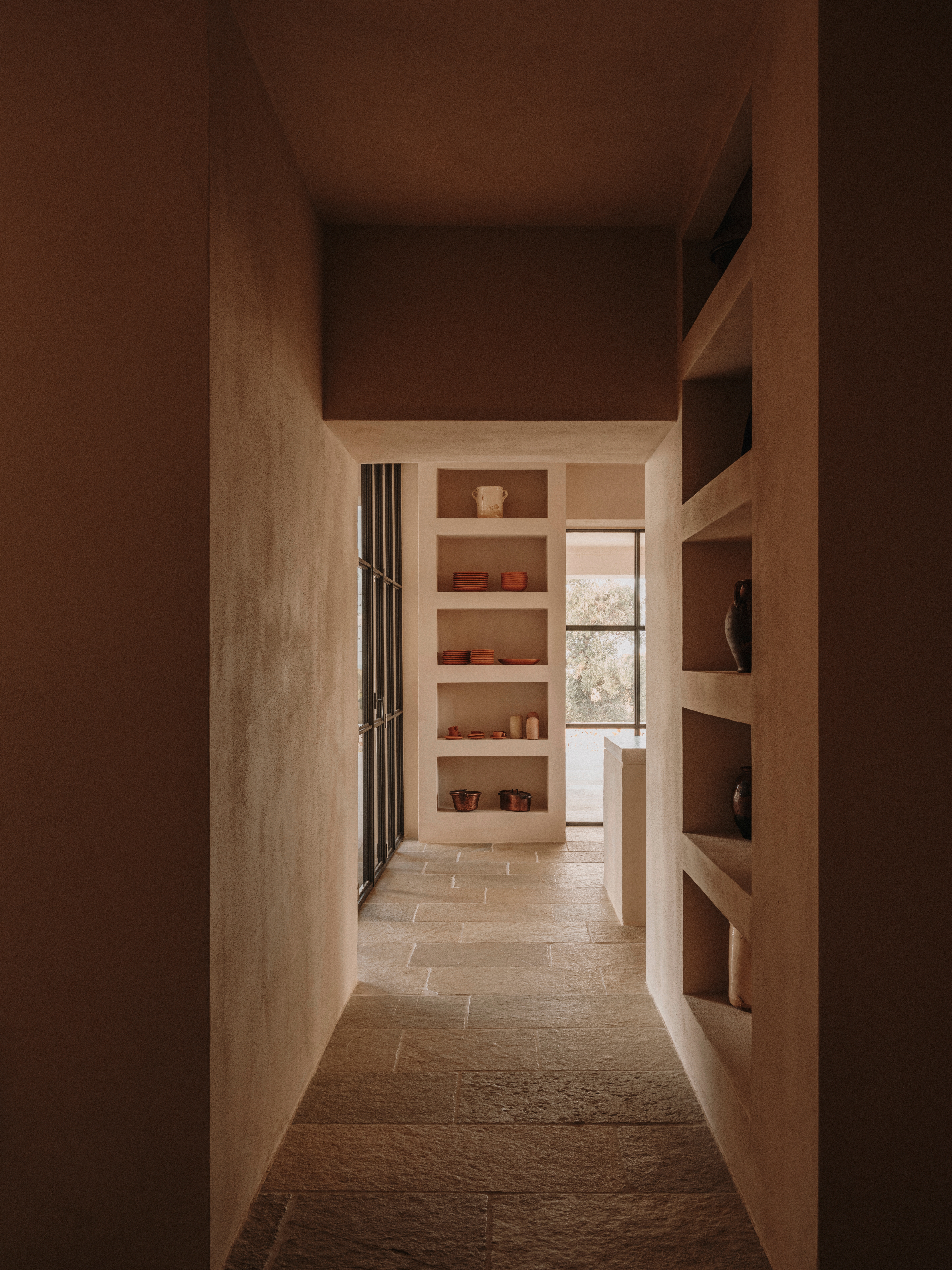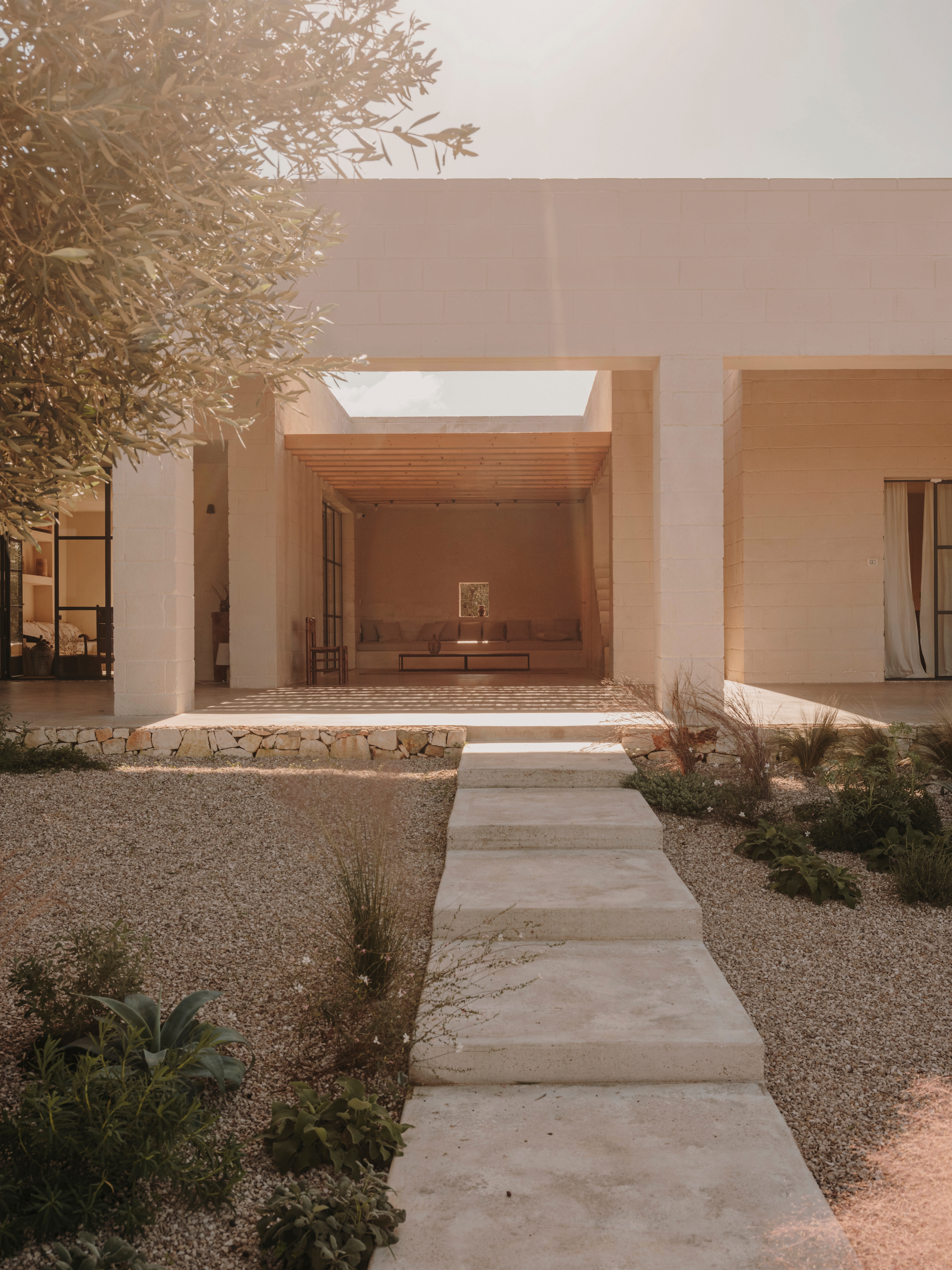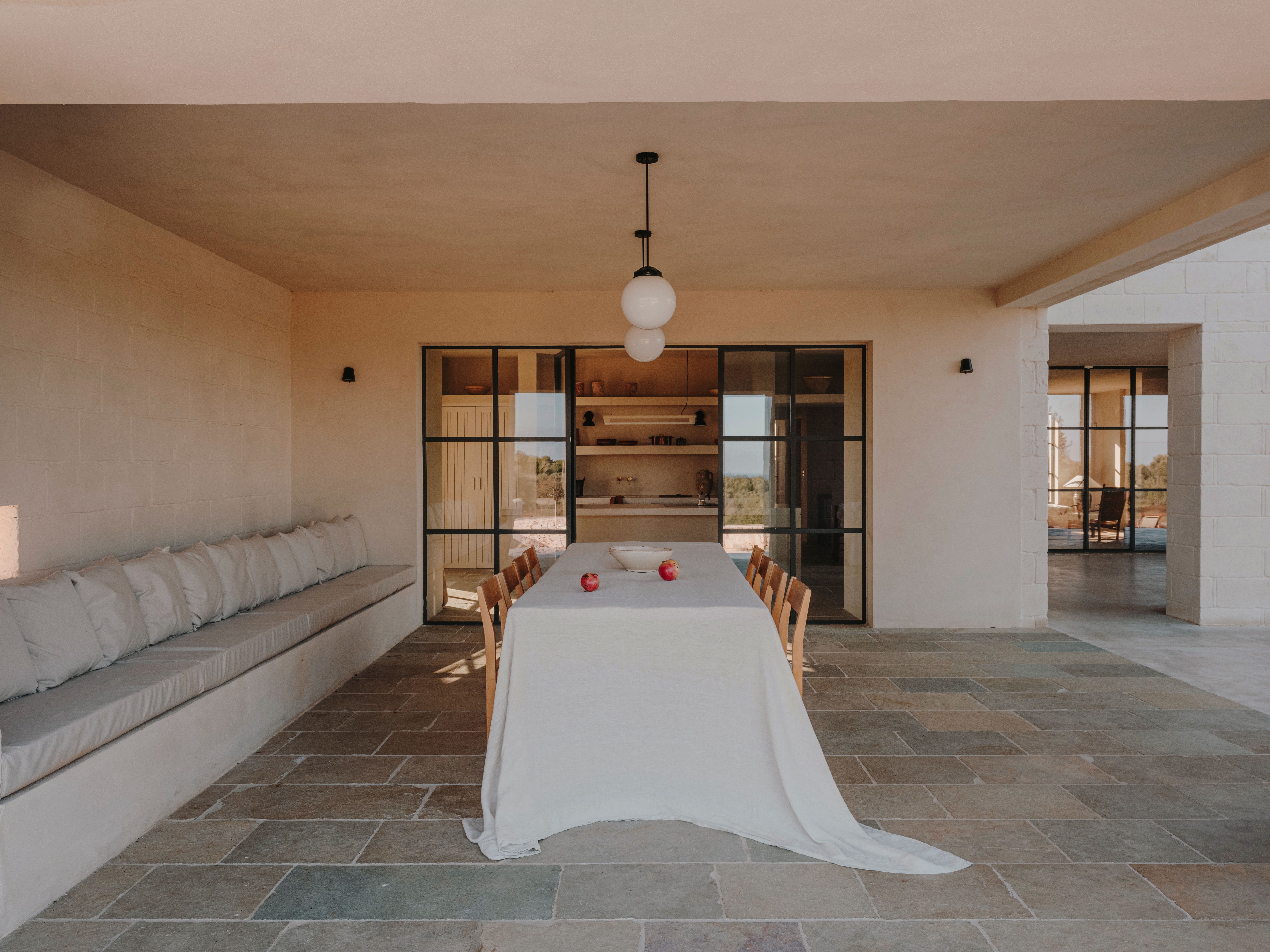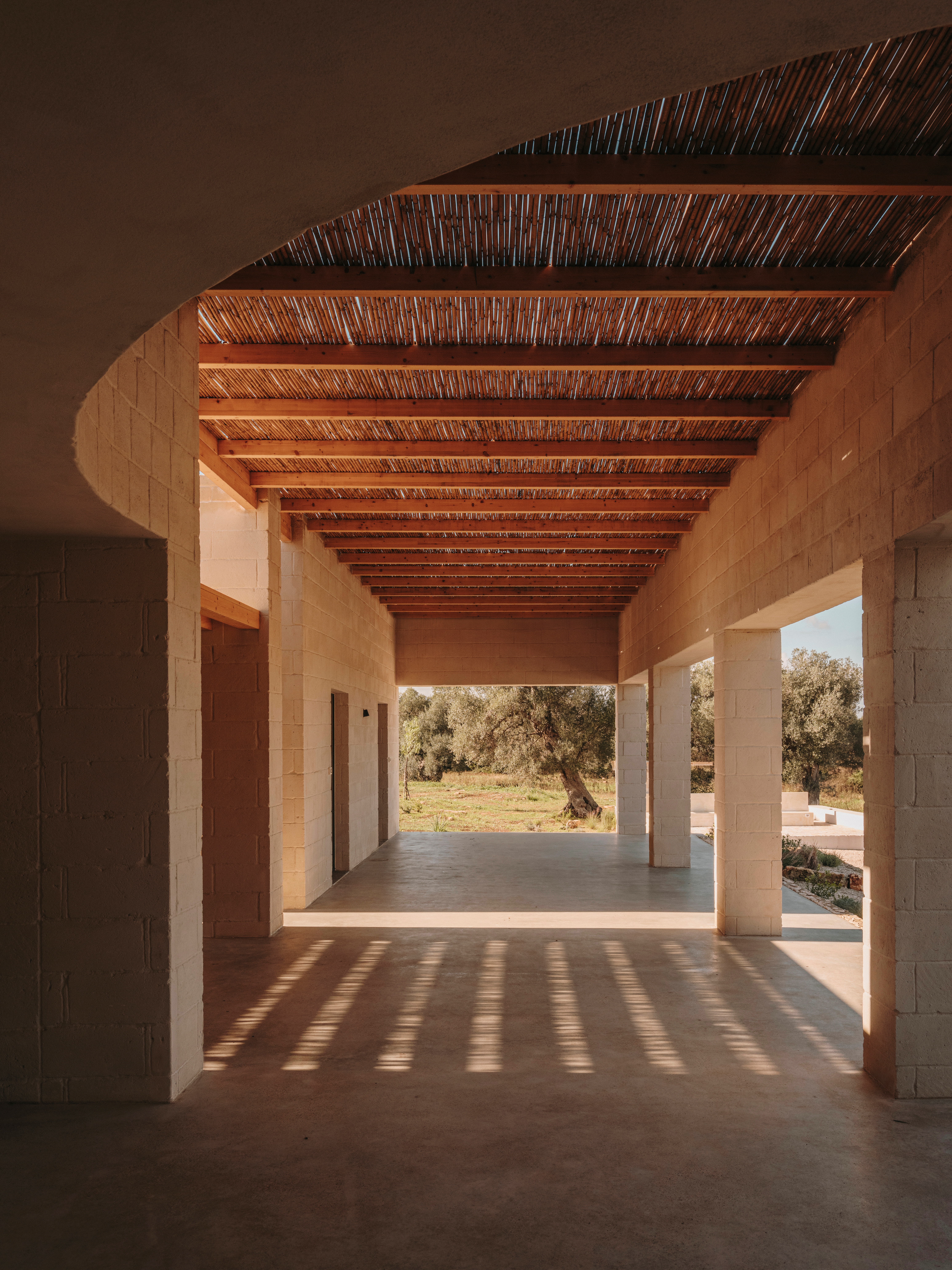 Studio Andrew TrotterThis project was the first escape for Studio Andrew Trotter from the white vaulted buildings, so typical of Puglia. Thus said, the Studio didn’t go far for inspiration: we looked to the villas of the coast, with their grand colonnades, and the walls that were painted with an earthy tone using lime wash made by a local artisan, as they would have done in the past centuries.