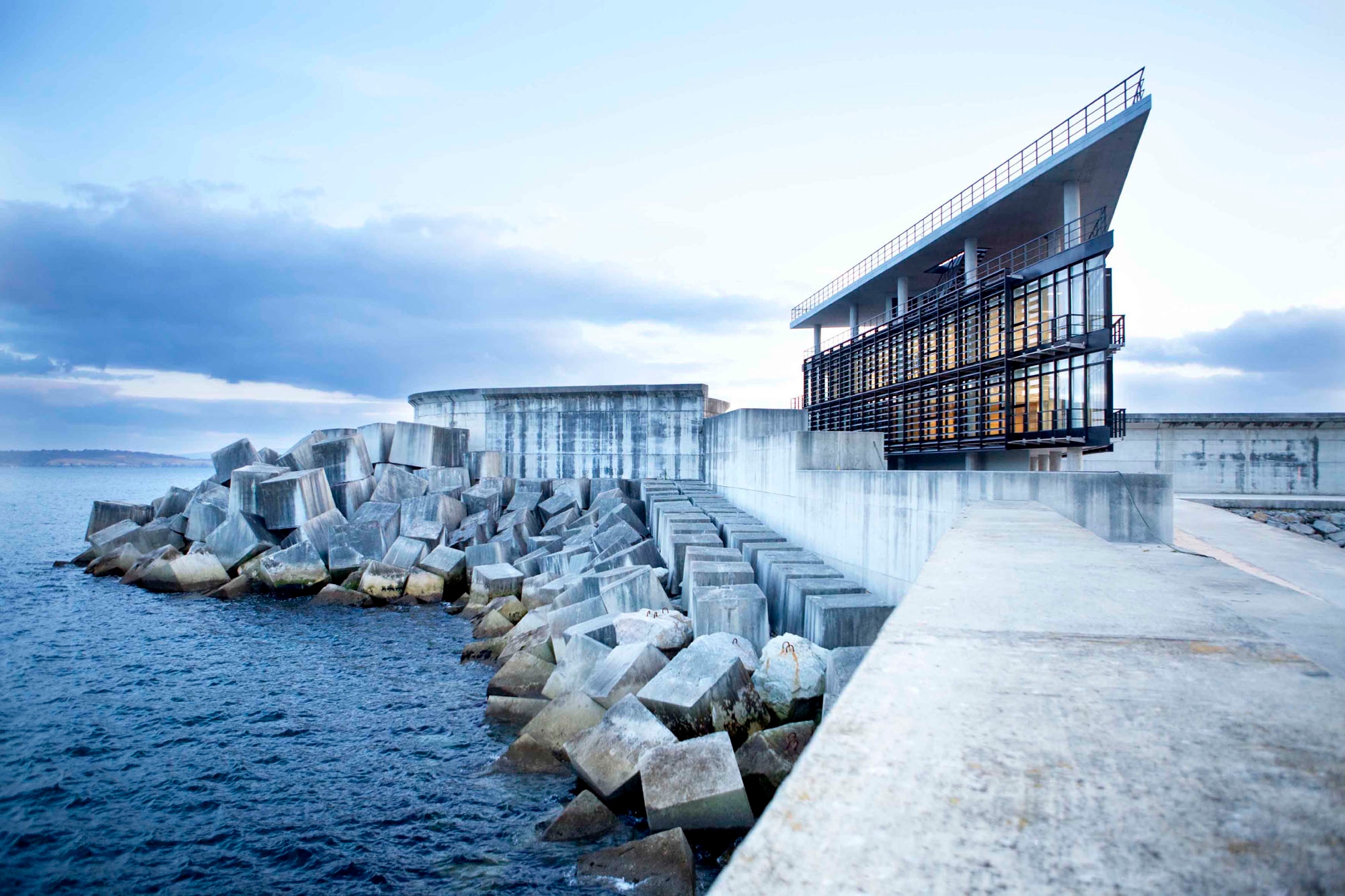 El edificio es como la proa de un buque dispuesto a levar anclas y a zarpar, sobre el martillo del dique principal del puerto exterior de Ferrol, abierto a las vistas de la ría. Los objetivos: singularidad y presencia; funcionalidad y flexibilidad; edificio "inteligente" y "high-tech"; economía y mantenimiento fácil.