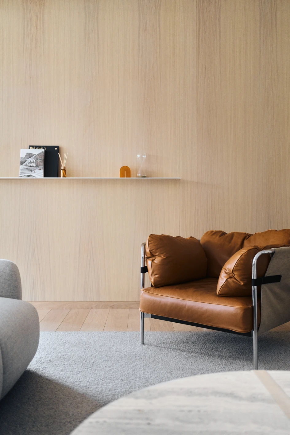 The overall sincerity of our approach is also noticeable in the functional layout of the common pavilion, where different spaces flow freely and blend with each other, allowing for a placid experience and visual consistency. Only the changing rooms and wet areas have been separated from other zones to provide spa users with a sense of privacy and overall comfort.