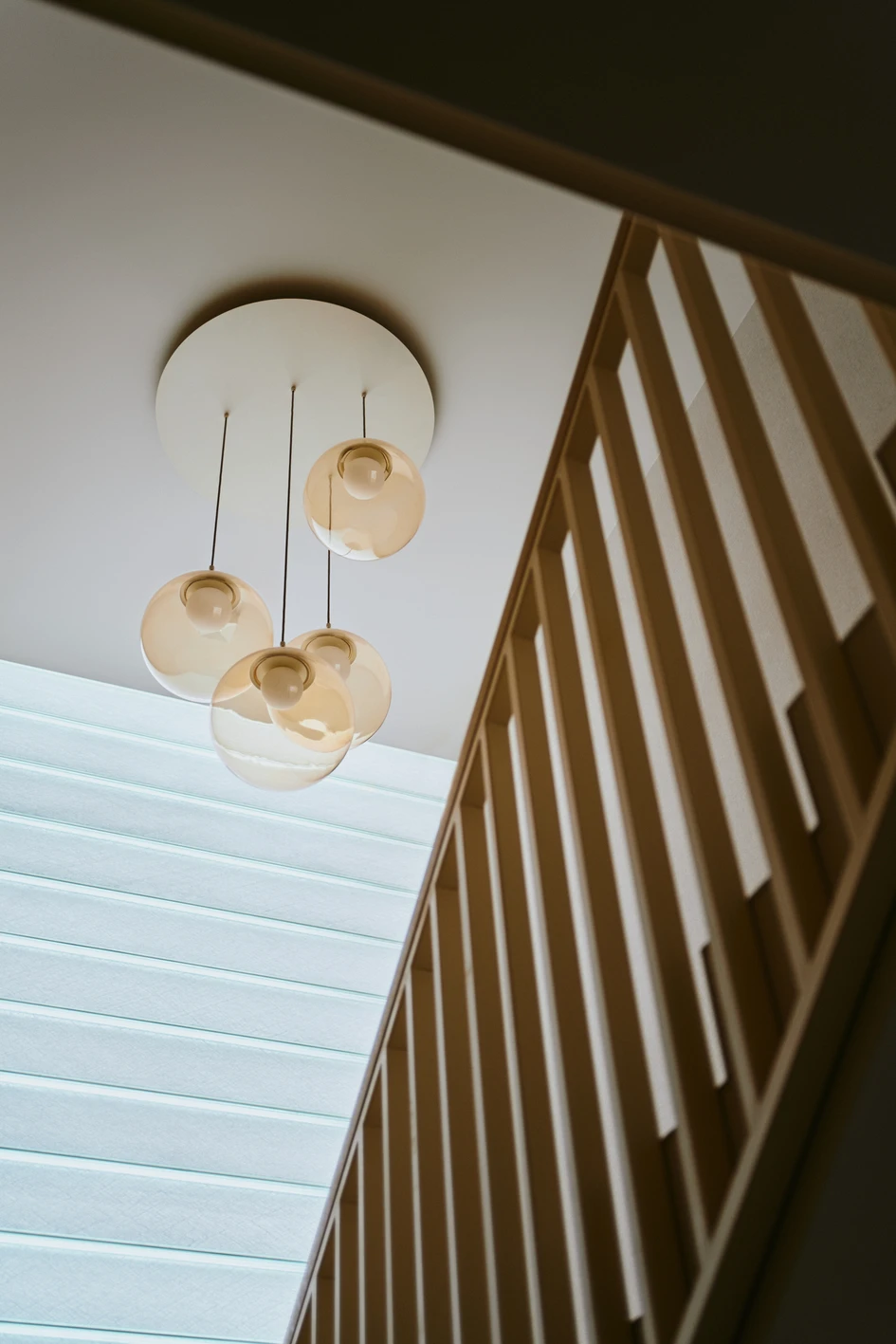 To further recreate the feeling of peace and tranquility, a serene and desaturated color palette was chosen, with hues ranging from shell whites to warm, sandy greys. This color scheme resonates perfectly with our northern, coastal vibe. Tan-brown stained mirrors are a sole strong interior accent but were deliberately stained only locally to create a washed-away effect. Other high contrasts were avoided due to their strong and invasive nature. We opted for more subtle accents, which act almost as interior jewellery, noticeable throughout the investment, especially in apartment and floor-level numbering. These amber-like details were made-to-order from golden brown resin. This peculiar gesture was a nod towards the city’s heritage, for Gdańsk was once world-renowned for its amber craftsmanship.