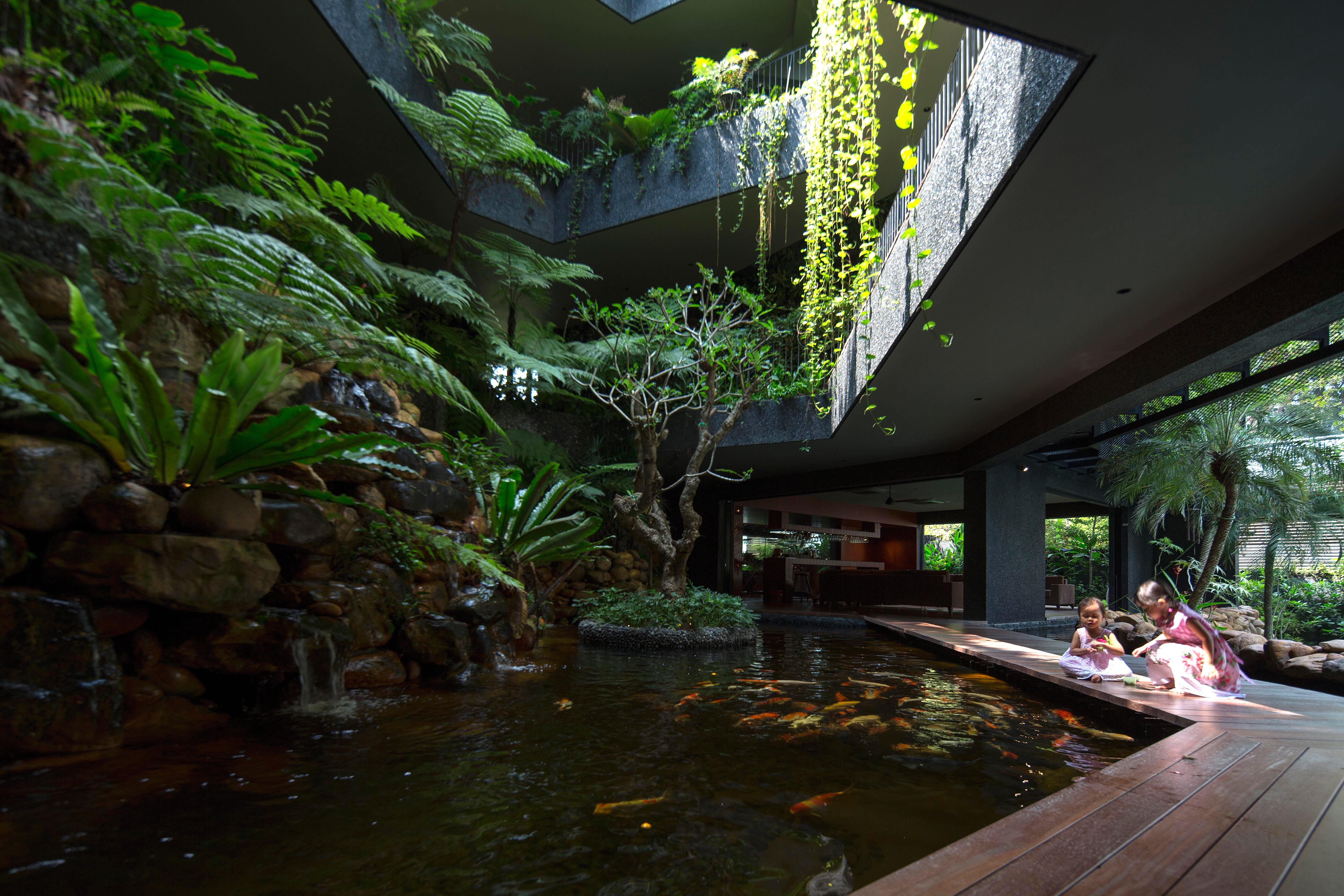 Designed with an I-Thou relationship with nature, the family and nature share the same breathing space. Plants, water bodies, and living spaces are integrated as one. The setting provides daylighting, natural ventilation, and passive cooling. It offers an ecological-friendly environment that promotes general wellness for all.