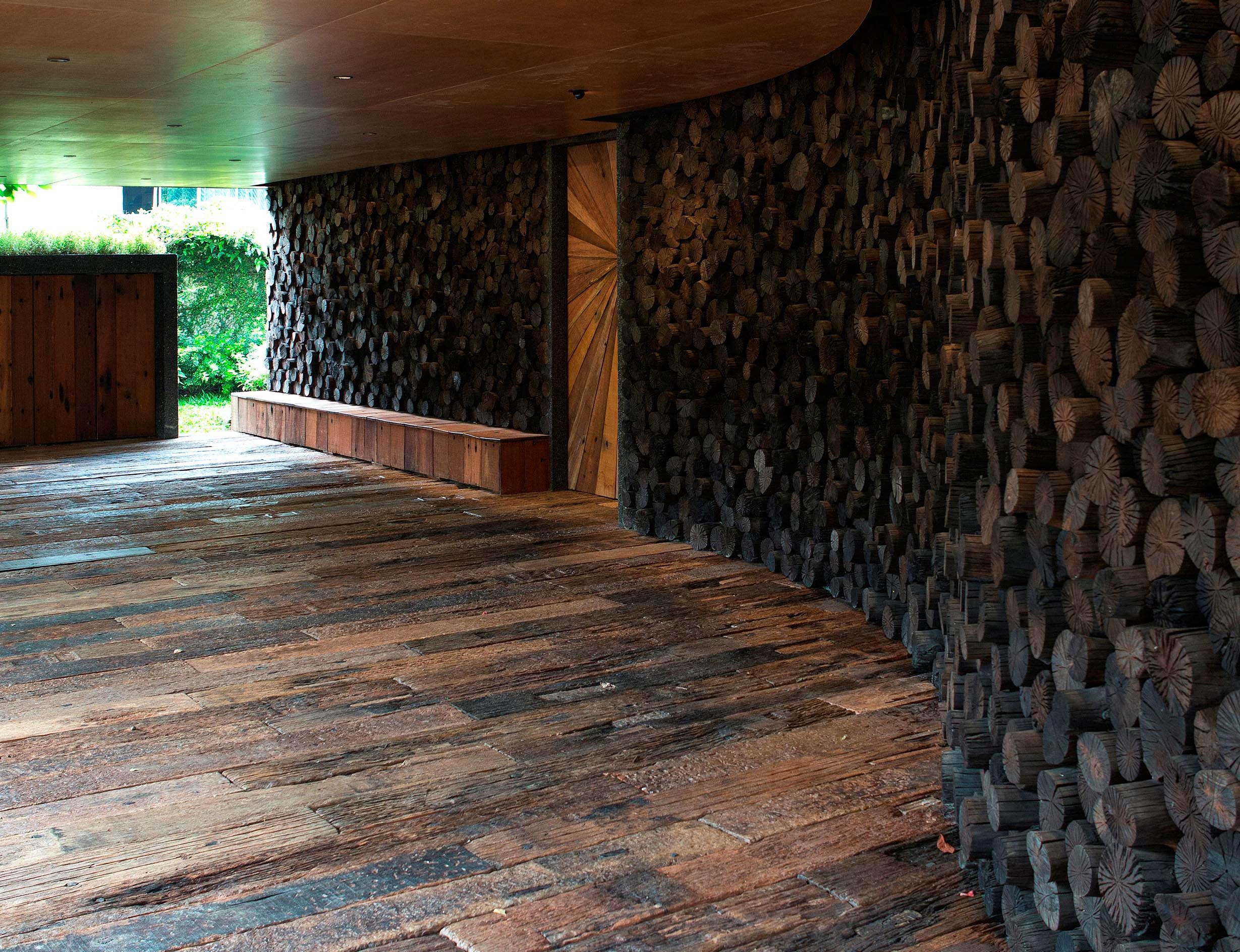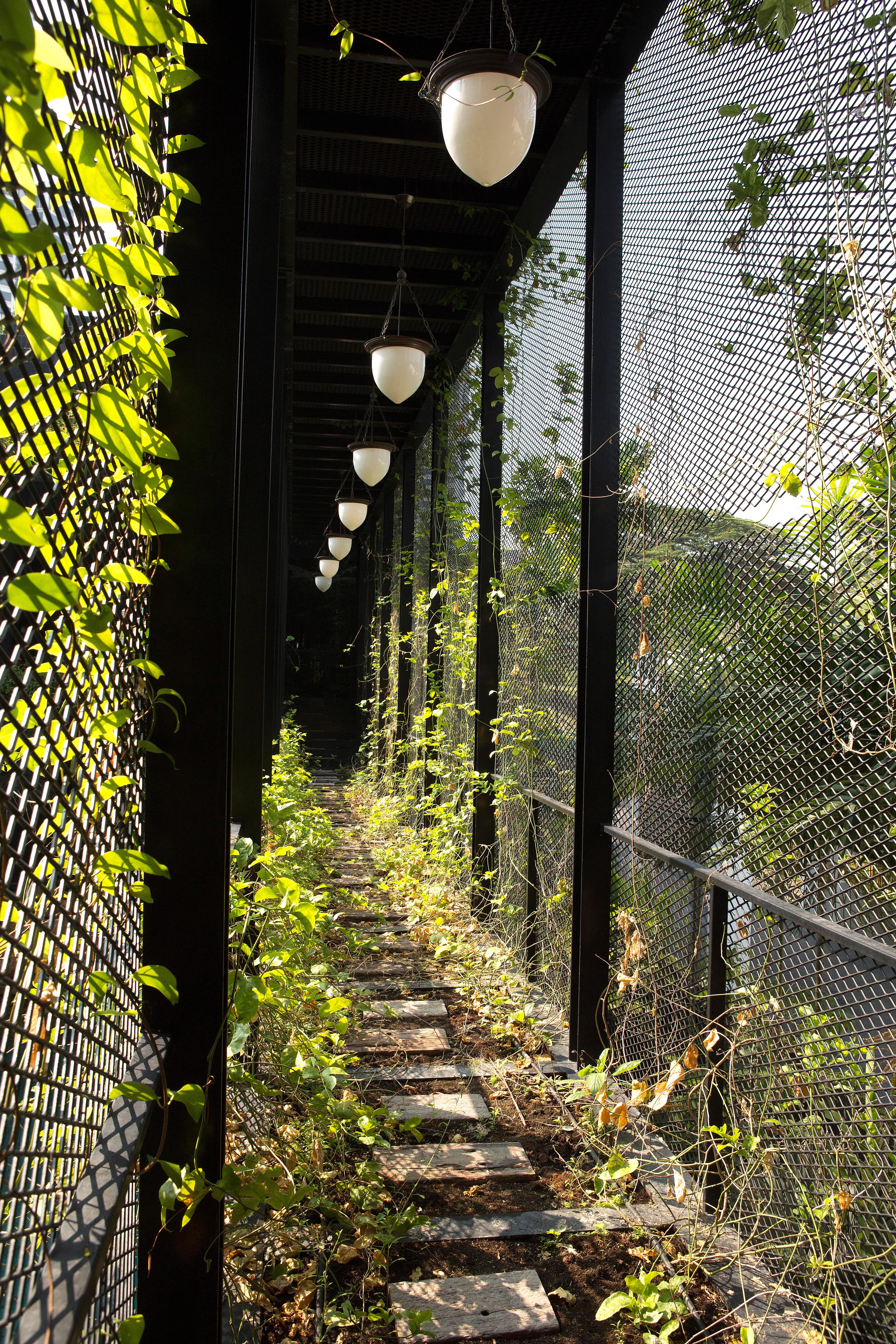 At the foyer, an old retaining wall with a history of leakage has been transformed into a green courtyard with waterfall feature. Visitors are now greeted with tropical rainforest plants and the sounds of cascading water, which can be enjoyed from all levels.