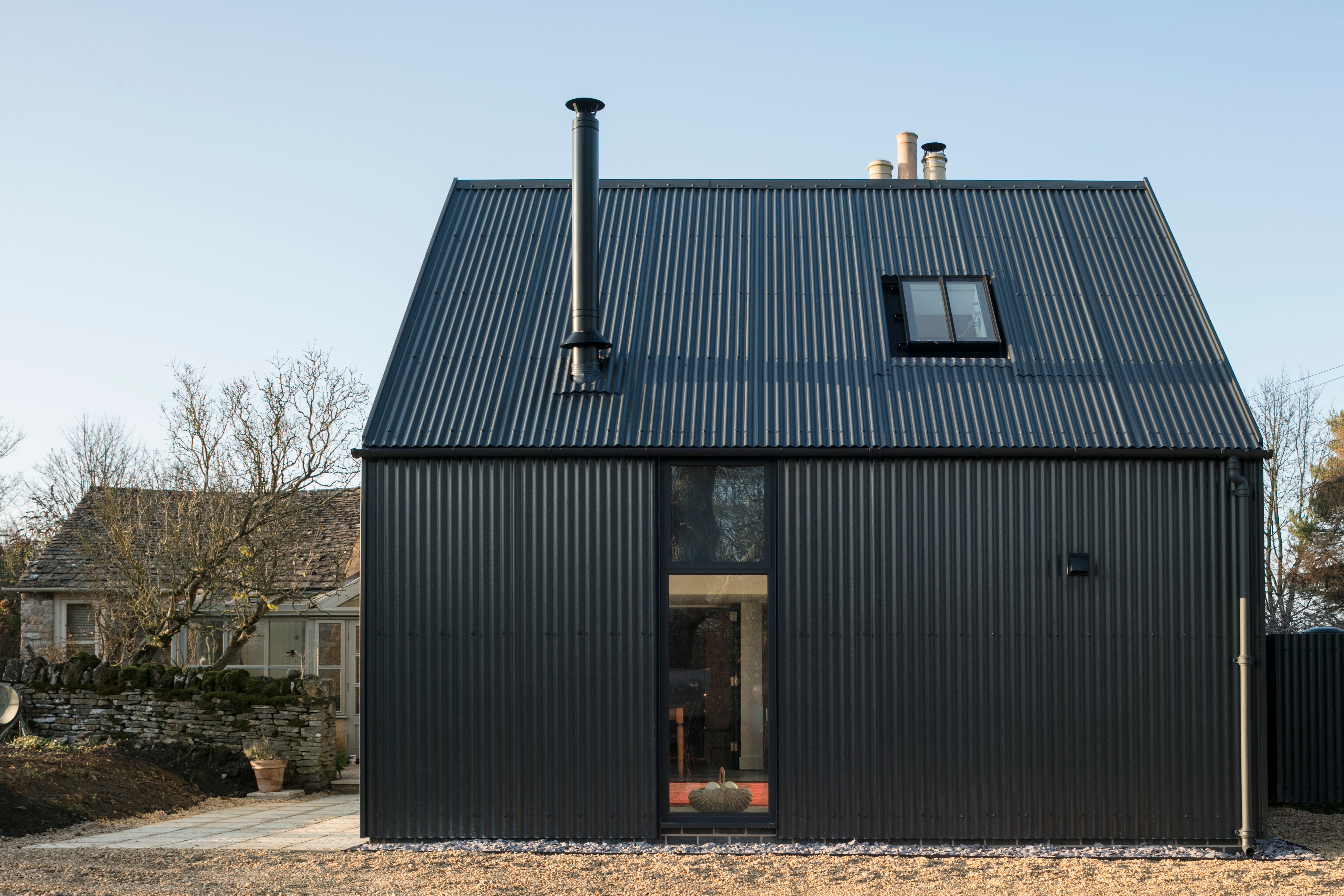 The construction uses structural insulated panels (SIPS) with battens and factory coated traditional corrugated metal sheeting.