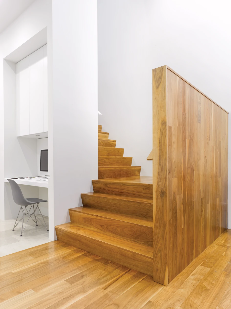 Their desire for a home designed for family life resulted in the compact and tailored form of Counterpoint House. Its function and flow facilitate the many family-oriented endeavours the clients sought. At the same time, the unusual split level stepping of its upper floors and bold window openings create a feeling of expansive spaciousness. Natural light is one of the main drivers of the design. The upper levels of the house are set back from the street face of the building allowing a large south-facing clerestory window to flood the middle of the house with sunlight.