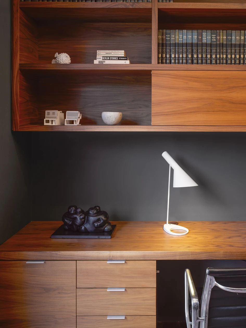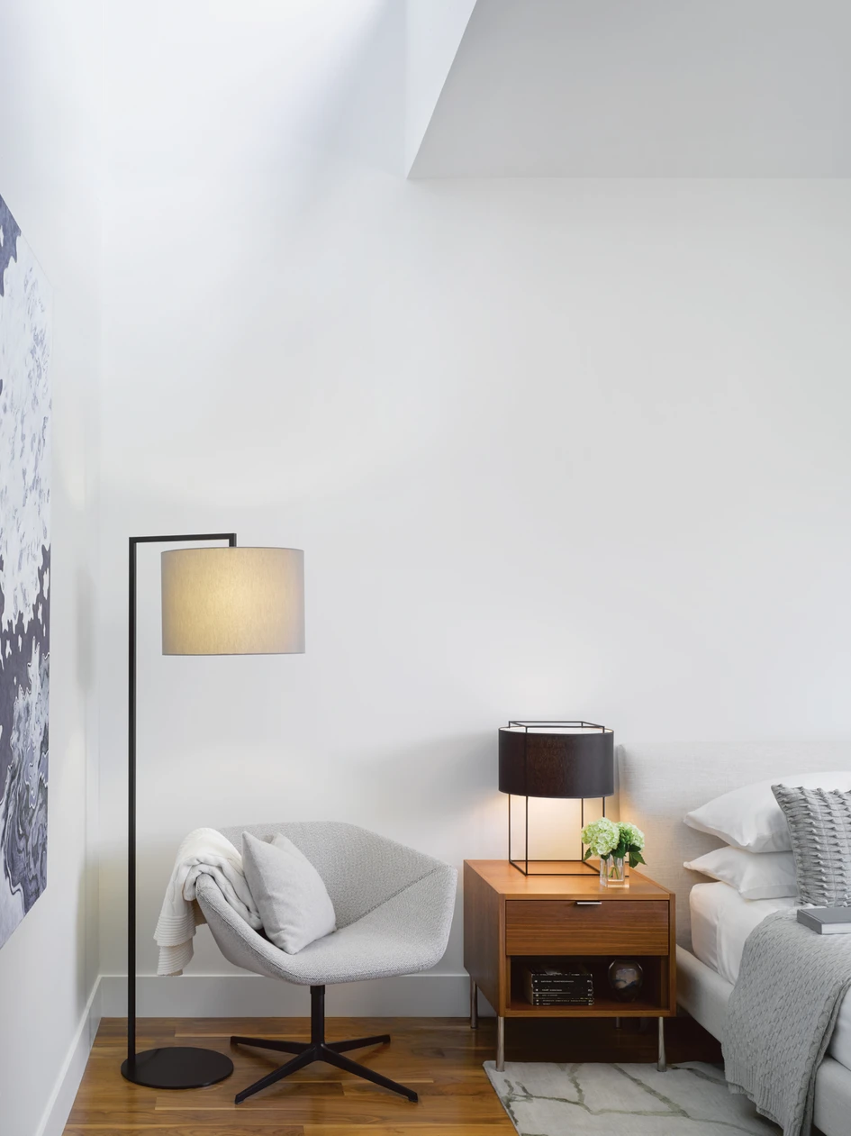 “South light in a northern climate is wonderful for helping heat the house in winter, but can create too high a glare to be comfortable,” says architect Paul Raff. “The solar reflector screen solves that, while creating a dynamic play of delicate shadows, which to me is the visual equivalent of harp music.” With south facing basement windows, and a view of the front garden, the lower level offers a light-filled comfortable get-away for the many family members who often visit from abroad. They have their own kitchenette, two bedrooms and washroom to call their home away from home.