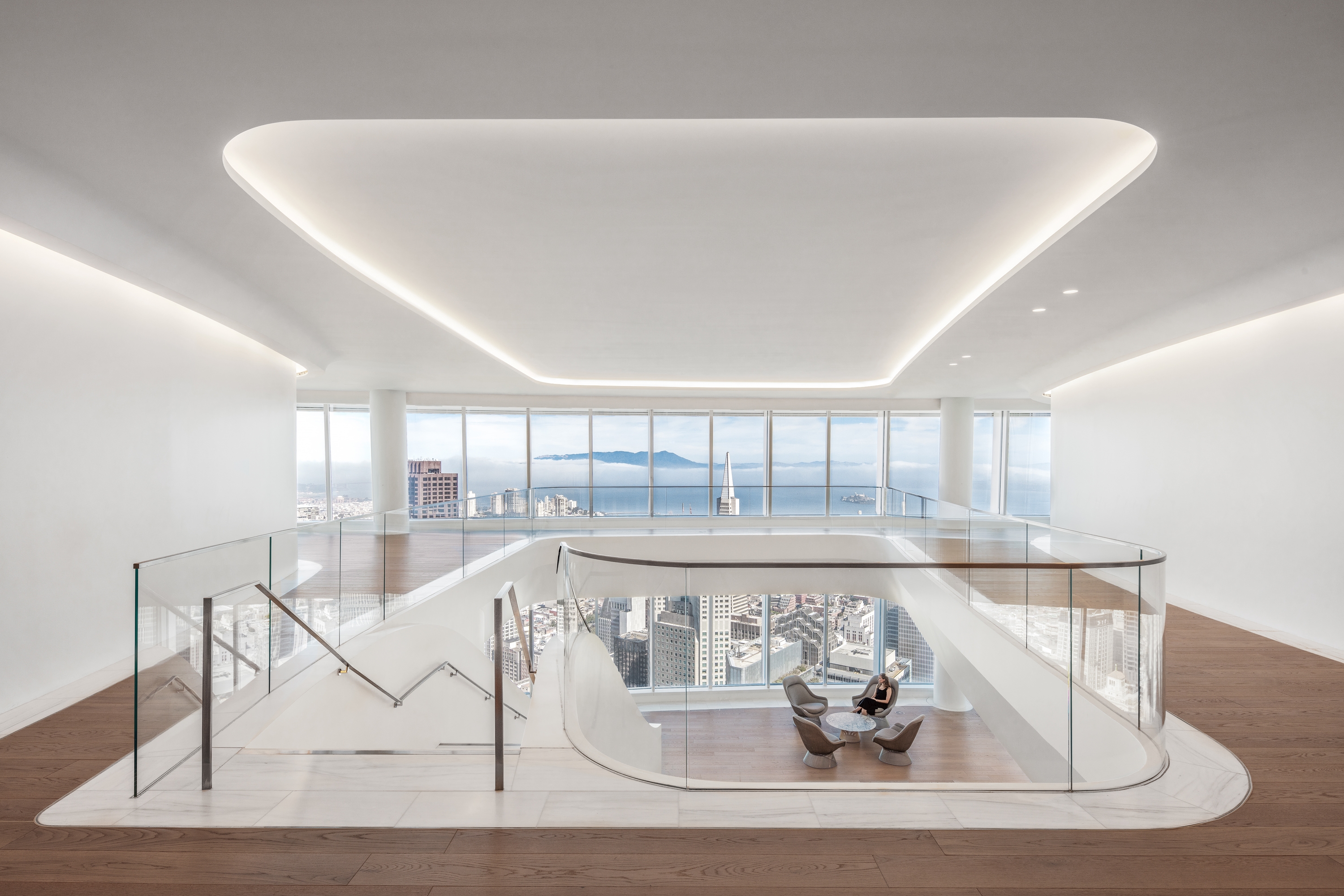 The exterior building curtain wall is curved in plan and section, making interior alignment impractical. The interior curves of architecture and light embrace and amplify, rather than fight against the building. The result is a surprisingly soft and seemingly liquid synthesis. All the lighting in the project is LED, and the lighting power density energy conservation achievements exceed the local jurisdiction’s requirements.
