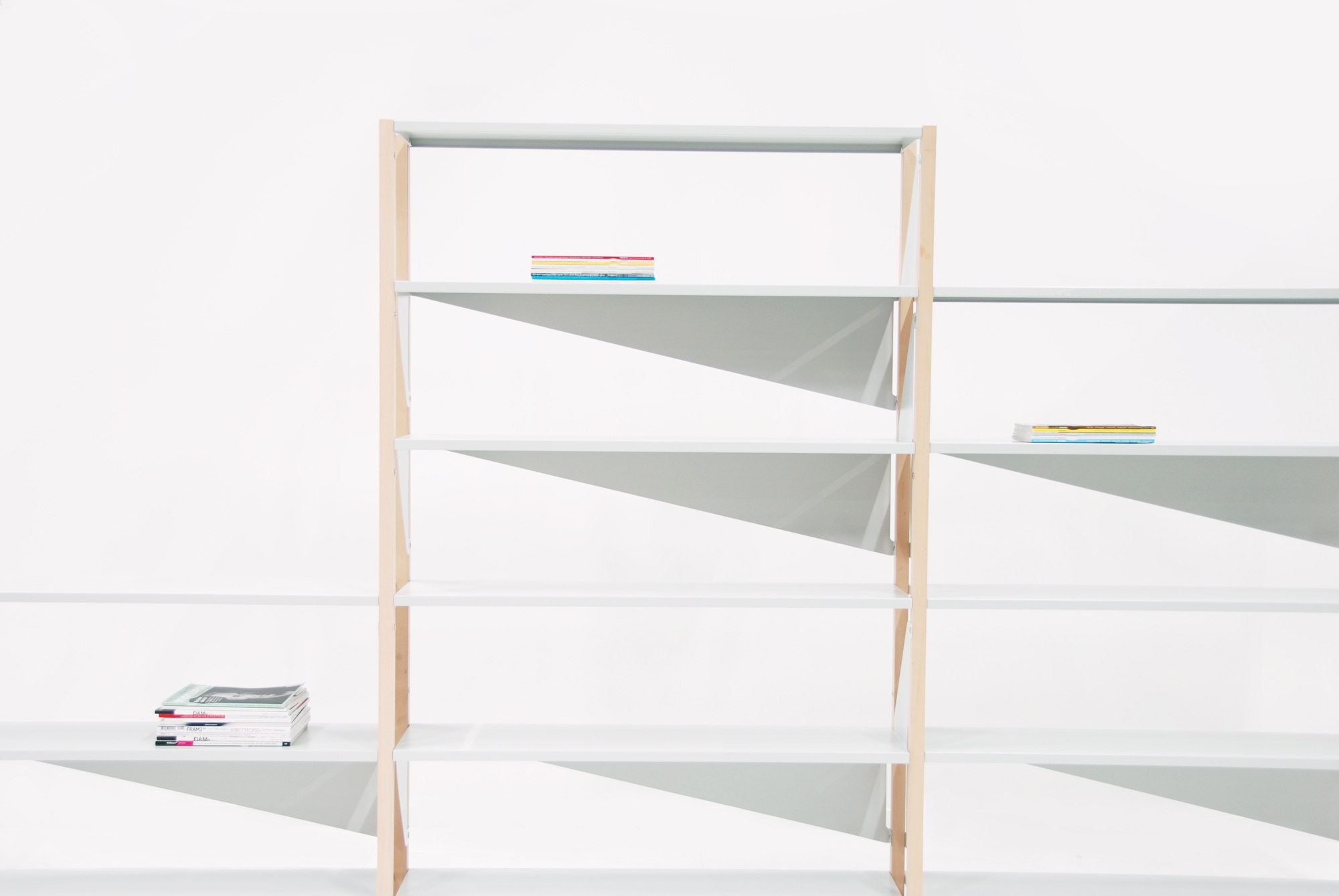 By combining a number of these two different shelves, a strong graphical and functional pattern can be composed.
