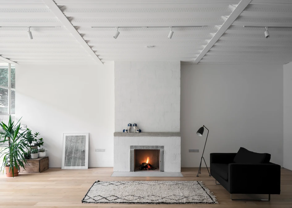 From the light and height of the entrance hall, you step down under the stairs into a darker hallway space beneath a heavyweight concrete soffit, before you move into the more domesticated spaces, arriving in the living room. Passing from the hallway into the living room, there is a dramatic change in spatial quality, from compression to expansiveness, as the ceiling height increases and panoramic rear windows provide an uninterrupted view of the garden.