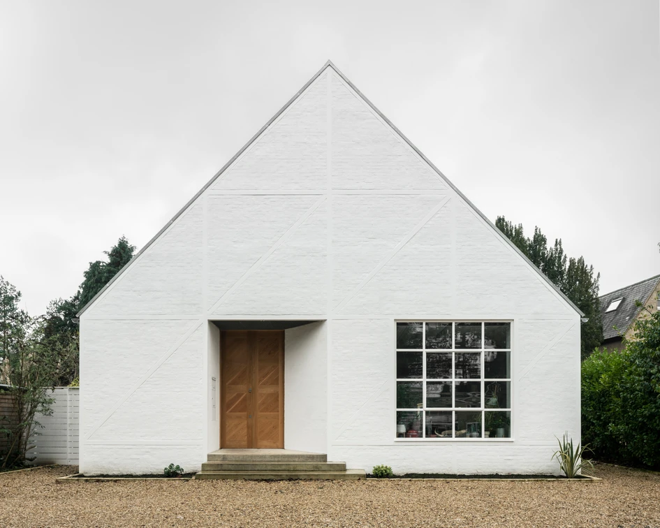 Ditton Hill House is a new-build, two-storey detached house built on a suburban street in Surbiton. With its pitched roof and pure white walls, it might at first glance seem at odds with its neighbours in this leafy district of west London. However, its form and materialisation are strongly informed by the local vernacular, and its design has emerged from the careful orchestration of subtle references to it.