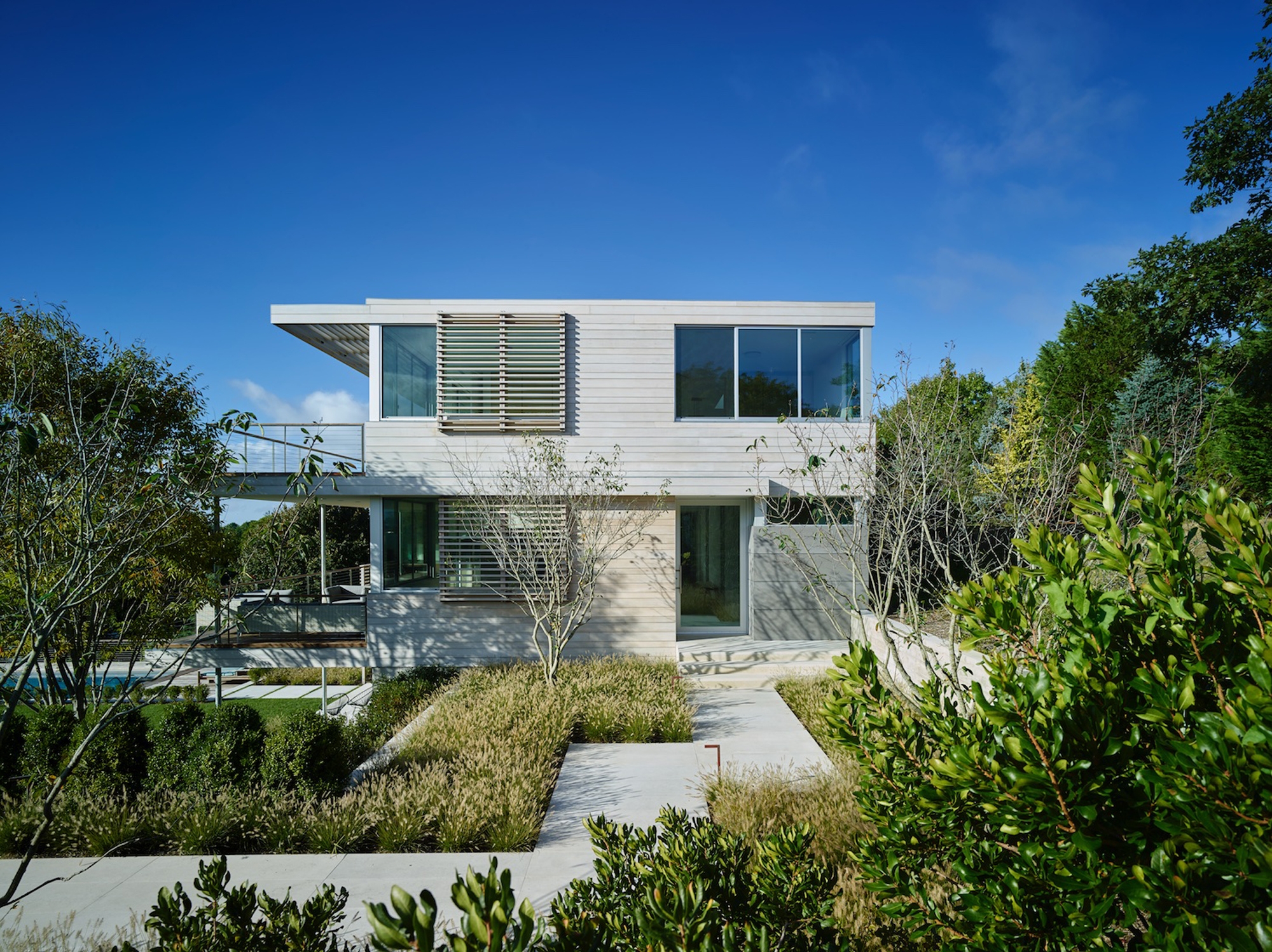 A garage and cabana was placed at the south end of the pool which screened the neighbors to the south, concealed the parking, and created an expansive feeling complex on a fairly modest sized site. Materials were chosen for their durability, value, low maintenance and their ability to coexist comfortably within a dunescape setting.