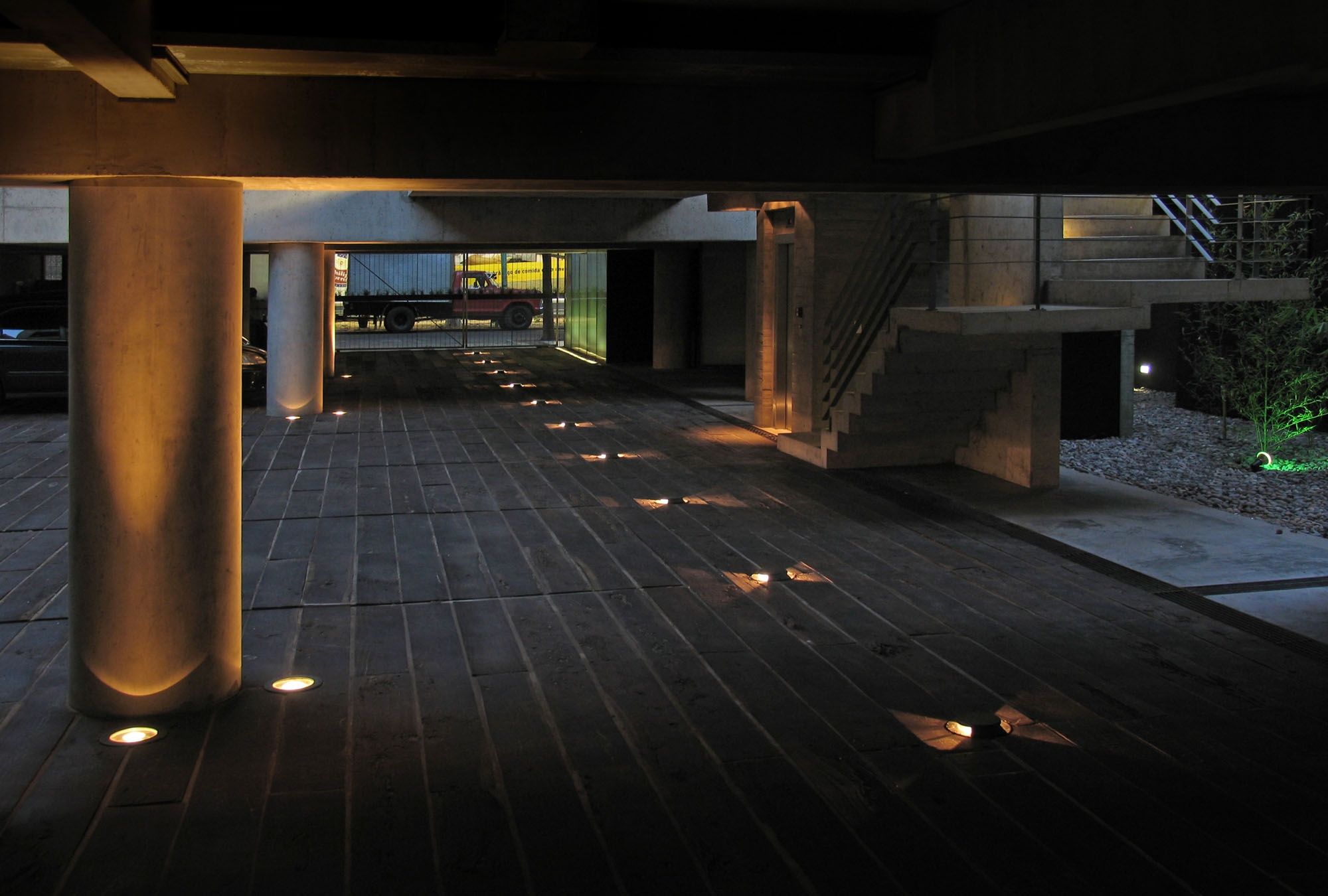 The units are organized in a way that they all have cross ventilation. The transit area, stairs and patio are in the middle of the units, which are divided into two sets of four apartments. All public circulations are outdoors, stressing the character of “little houses” of the apartments. Cars and people enter by the same place: a low platform with wooden floor, which serves as parking at night and as playground during the day.