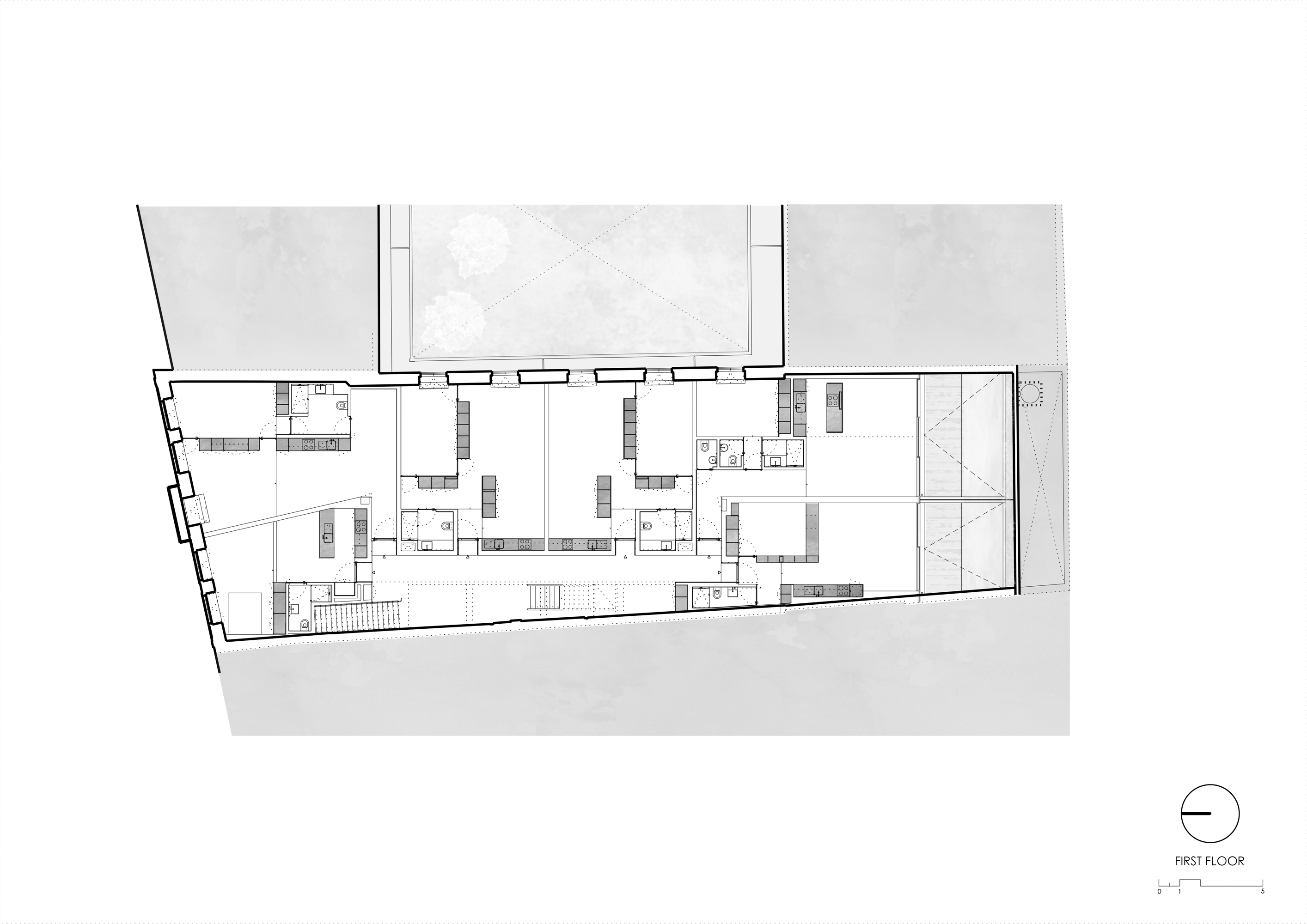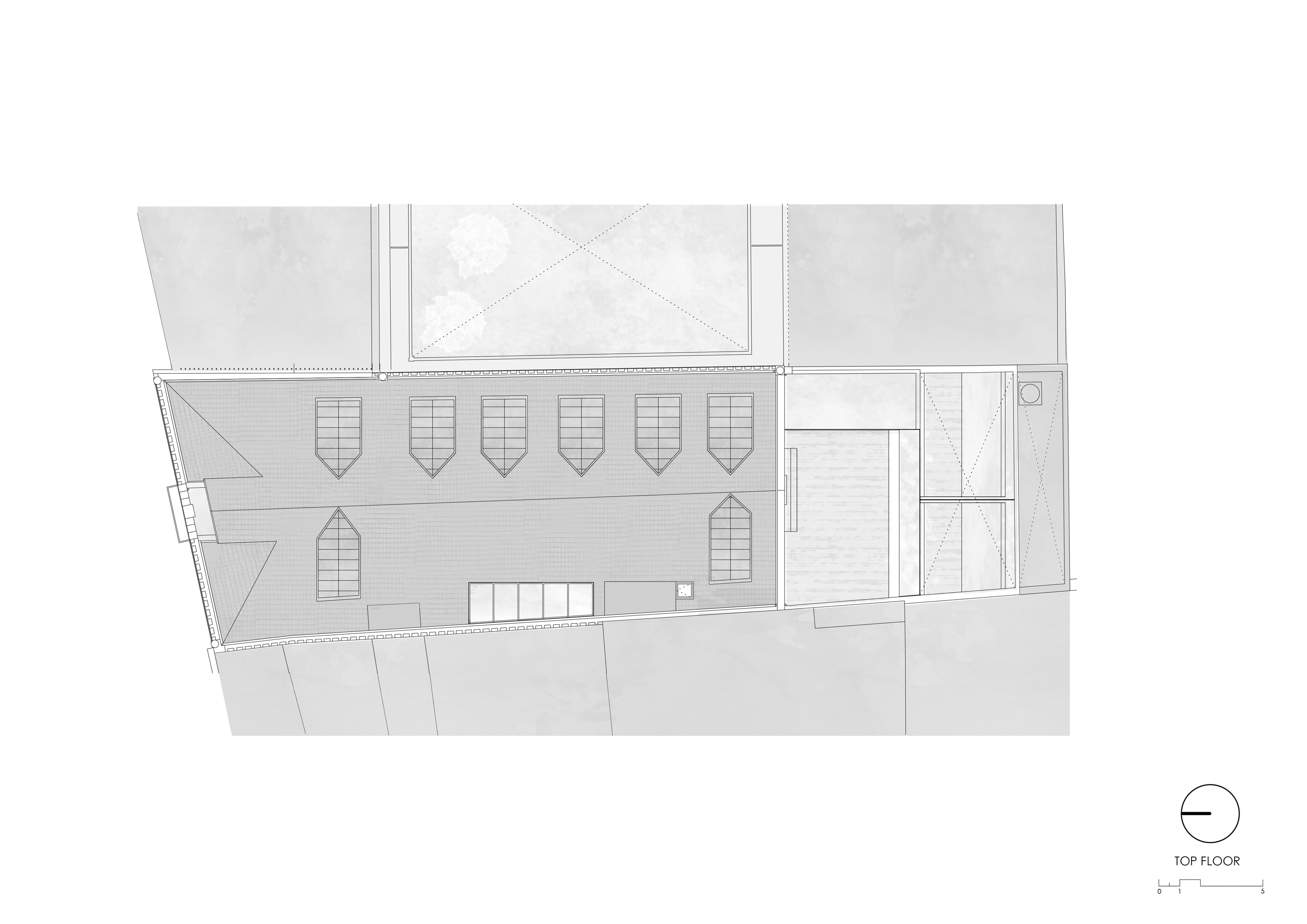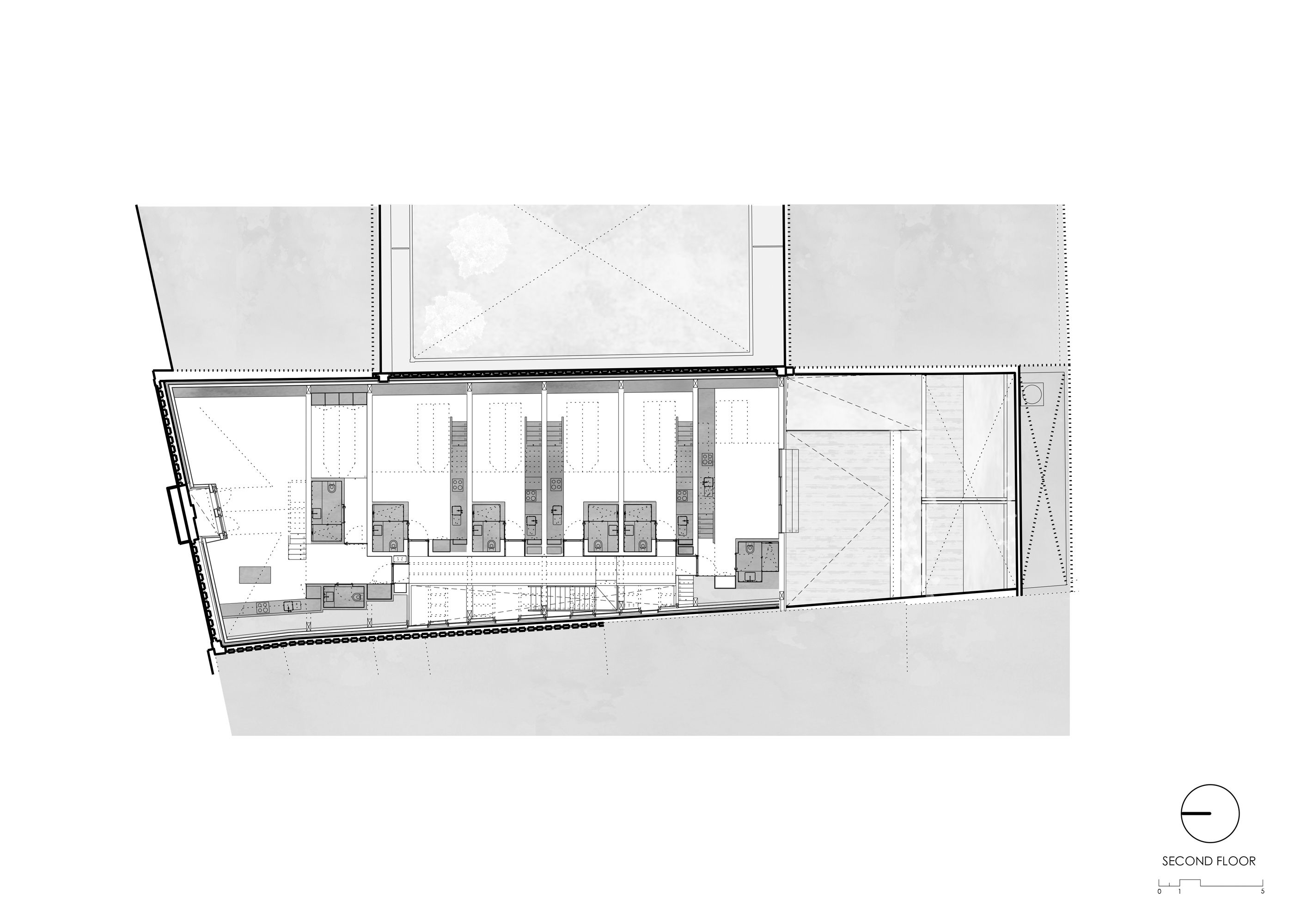 The old marble workshop is located at Rua da Conceição, with a common courtyard to this building and to the warehouse, which functions as a joint between both, articulating the façades for the two streets, Rua José Falcão and Rua da Conceição, perpendicular to each other. Despite being classified as a Monument of Public Interest, the entire interior of the building was completely demolished when the project was started, with only the façades and roofs (already in bad condition) from the original construction.