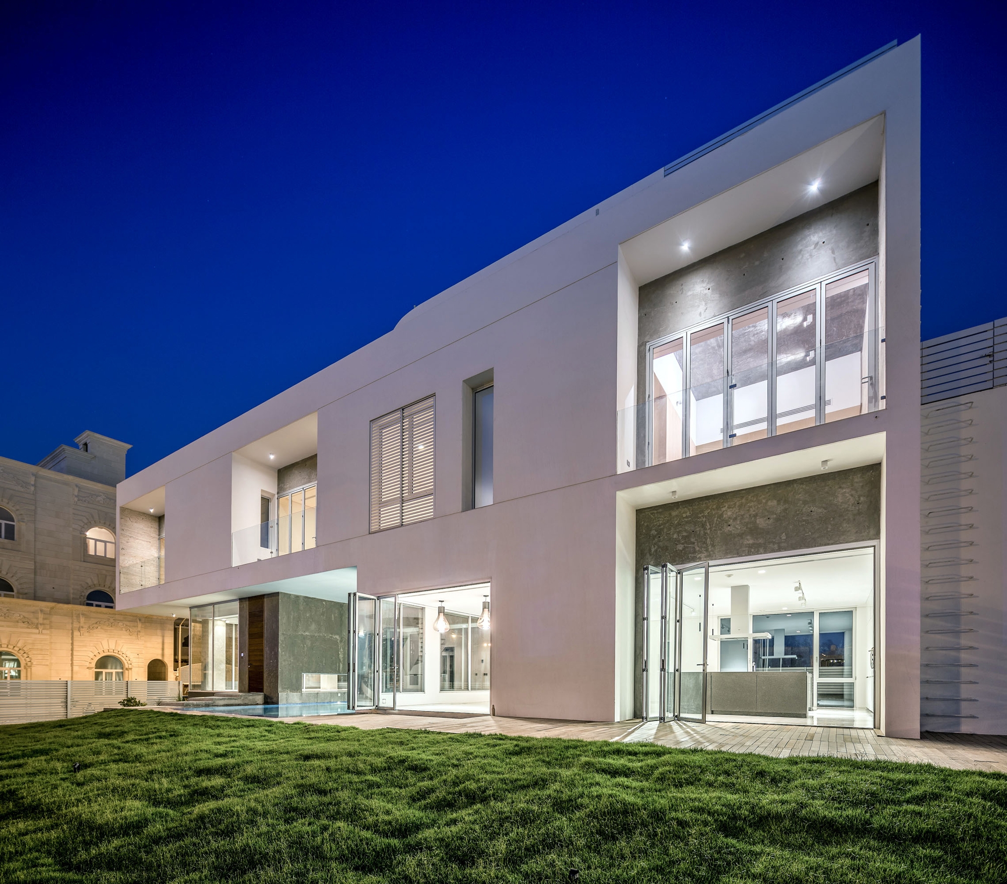 The F.LOT house can be described as a minimal composition of 2 seemingly floating masses intersecting at right angles. A 5m cantilever adds drama and gives the composition its unique character. The house features a 15m long pool which appears to float above the parking. The pool bisects the longitudinal volume which houses the main social spaces and the living quarters.