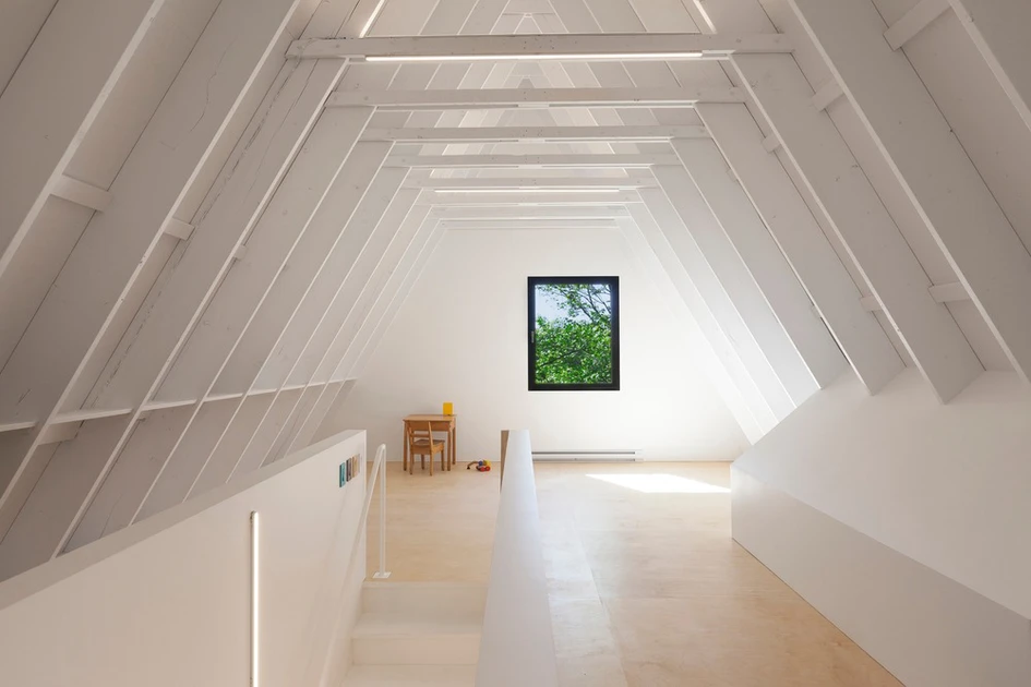 Conceived for a couple of young professionals and two children, the cottage revisits the family home settings to explore an imaginary closely linked to the site, its occupants and their actual way of living the family life. The close complicity with these clients during the design process, and the playfulness distinguishing their parent-children relationship, empower the architect to design a new way of living their reality. Throughout the construction, the collaboration between the architect, the family and the entrepreneur promotes a shared enthusiasm resulting in building quality and flawless finishing.