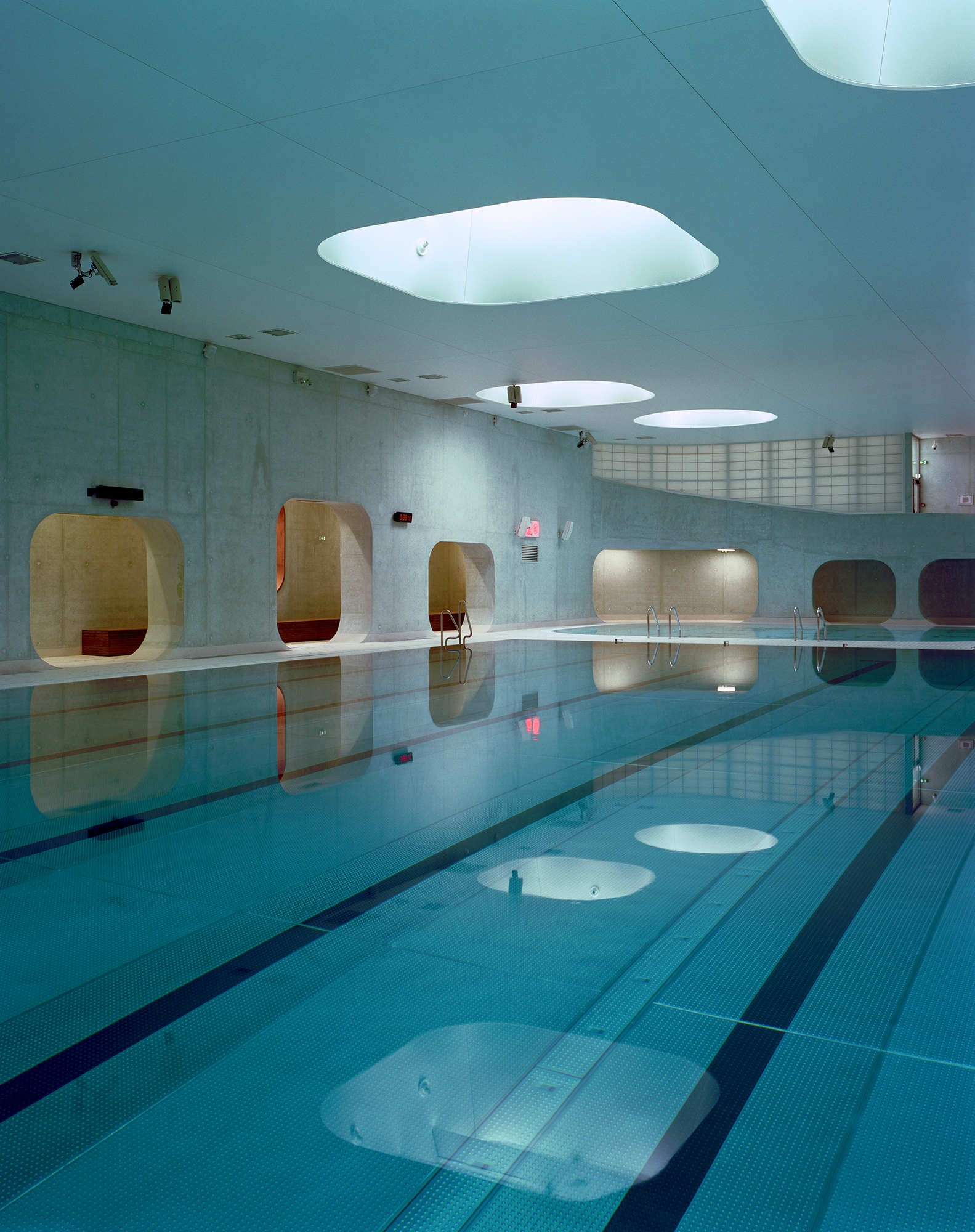 The swimming pools halls – A haven of peace and light lit by “glass carpets” in the roof