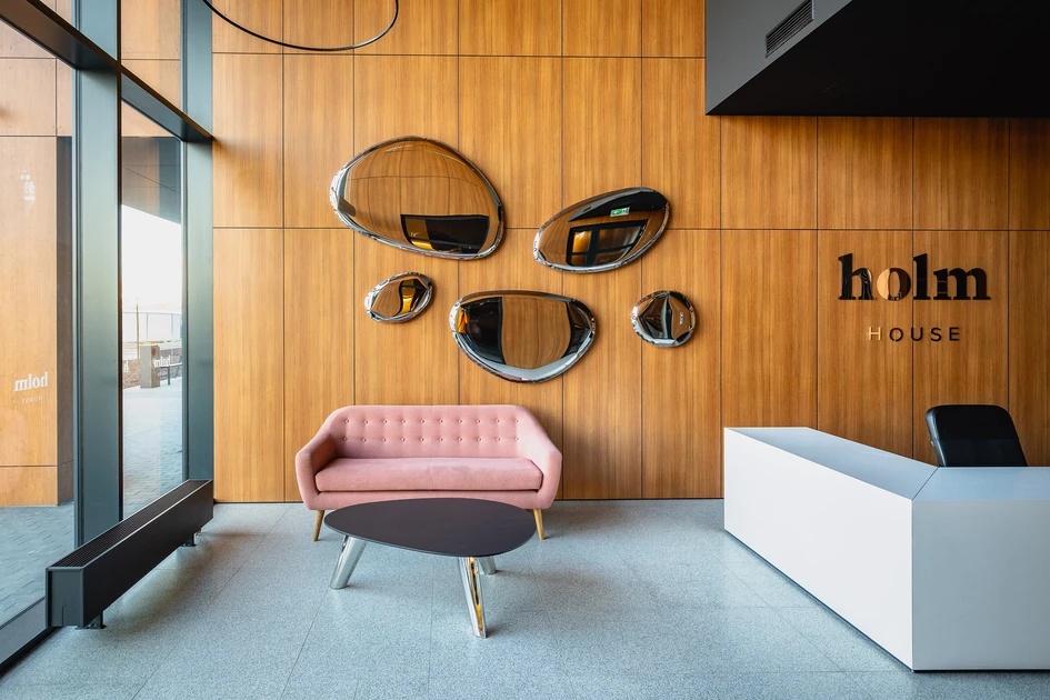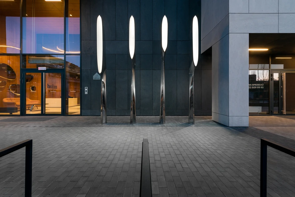 For Oskar Zięta, the FIREFLY project was an experiment with both semi-public and public space. Zięta intended to smoothly link the Holm House building’s interior with the external common space. The skylights were designed especially for this location as an element corresponding with the TAFLA mirrors installation located in the building’s entrance hall.