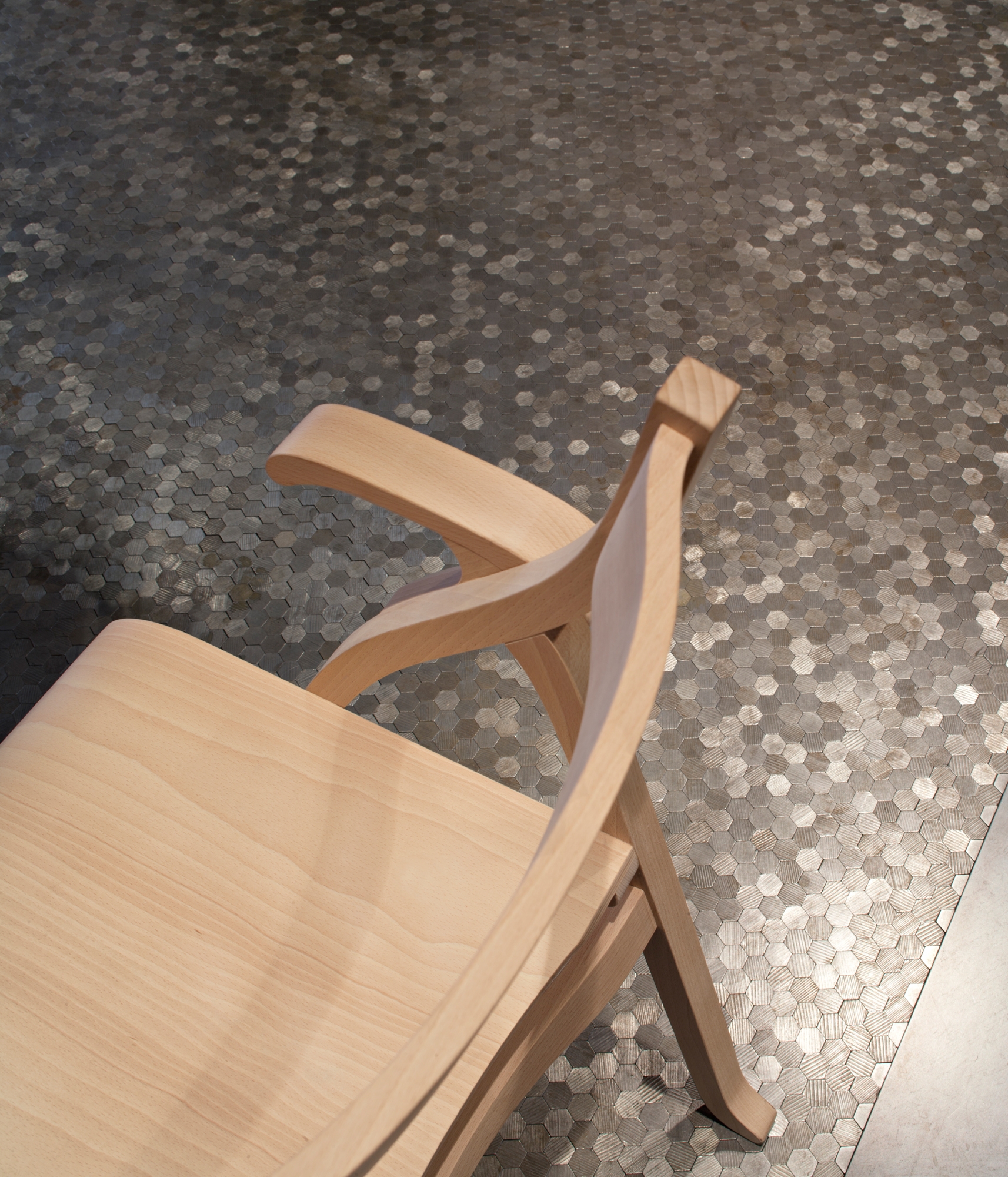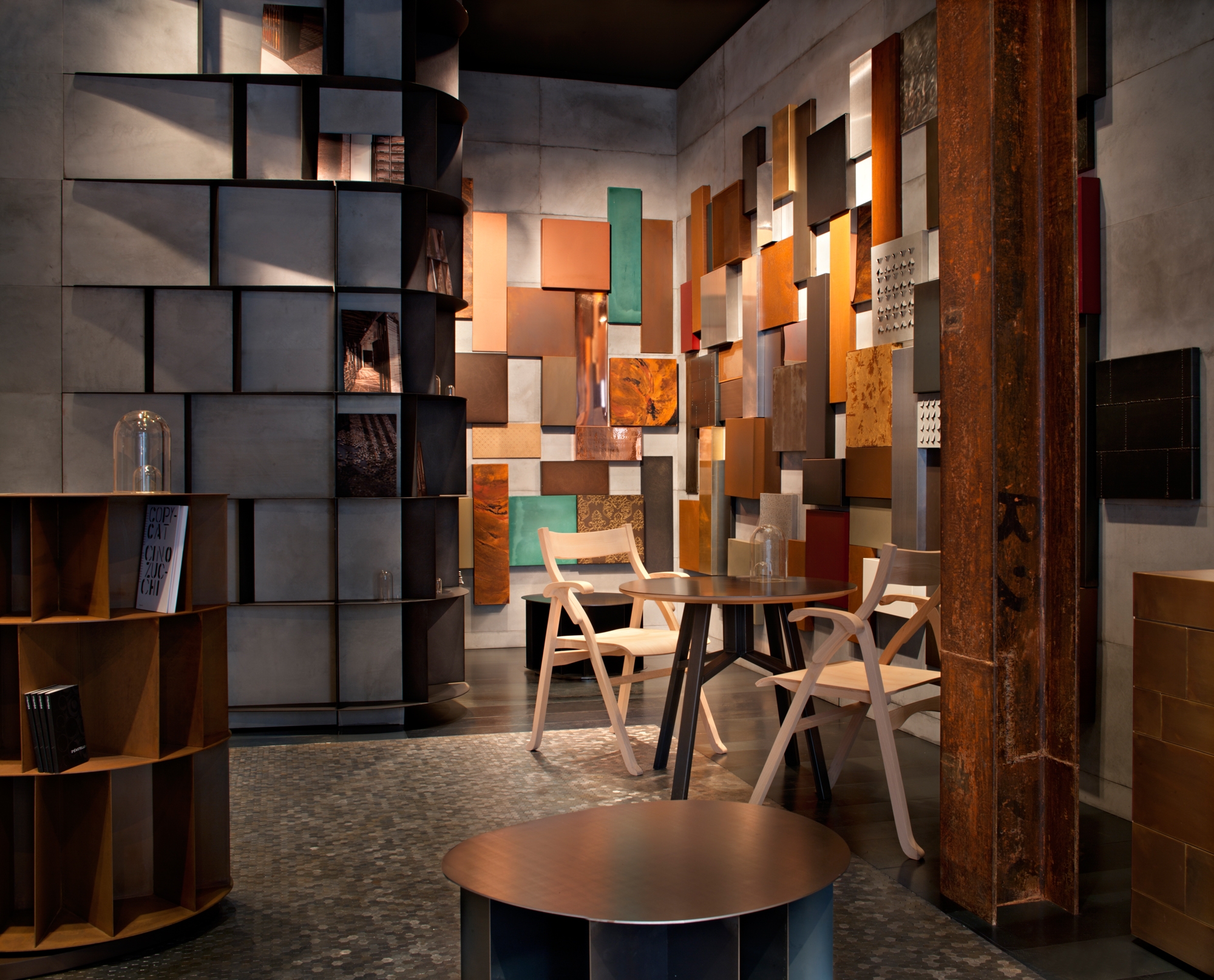 “Metal is metal” is the subject of the set up designed by Michele De Lucchi who conceived the space dividing it in three harmonic parts: the gallery of materials, the photographic exhibition of works by De Castelli and some design pieces that the company has selected for its catalogue.