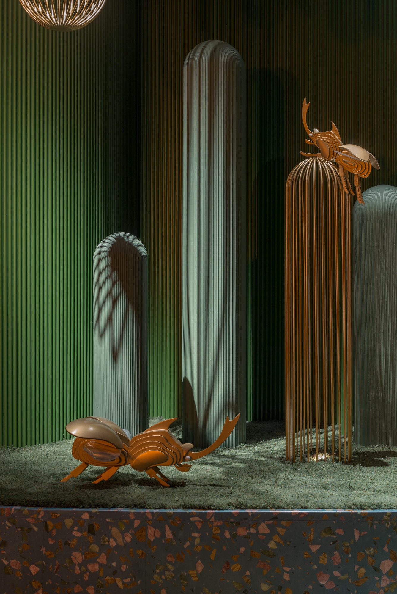 The design team chose Hercules beetle as the icon of the brand, since it symbolizes healing, energy and vitality. Its image is extended to print materials, screens and three-dimensional installations in a holistic manner. It is widely applied to the offline space and online APP, to tell the brand story where travelers encounter an oasis after a long, arduous journey in the desert and eventually find a wonderland under the guidance of the Hercules beetles. It's just like the process where stressed young urbanites enter this space, in which their body and mind are relaxed and healed by foot bath and spa experiences.