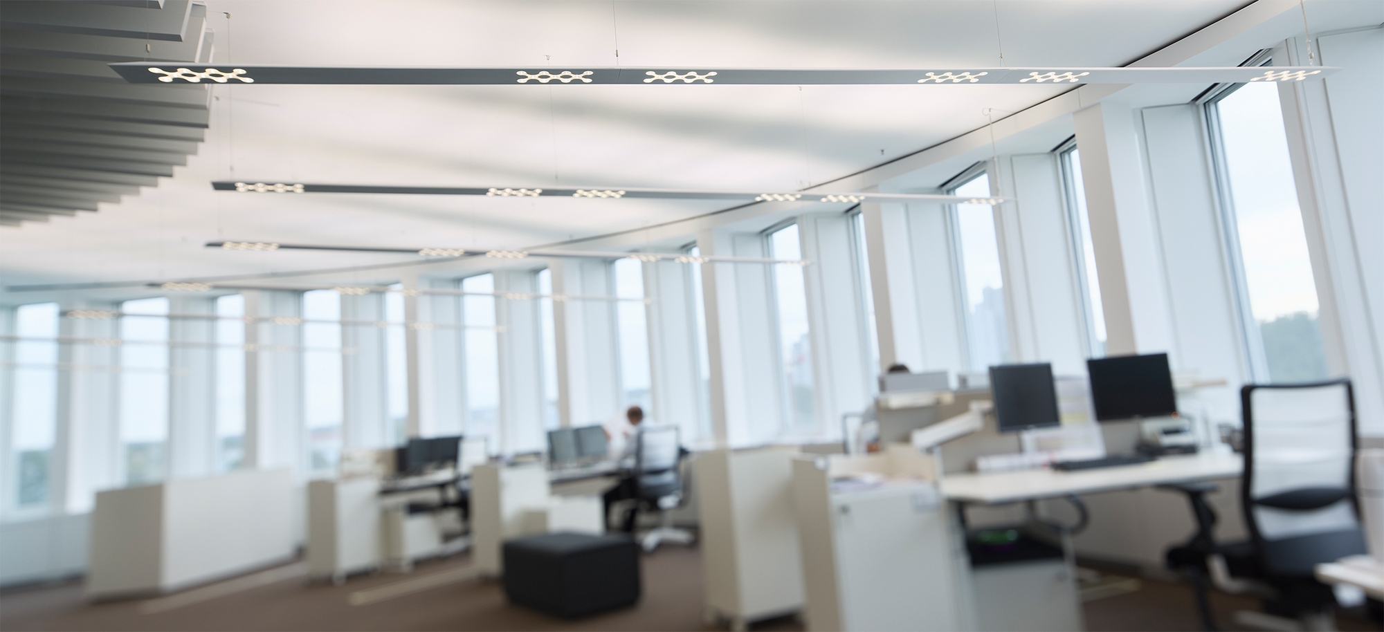 Ausschlaggebend dafür war ein perfekt abgestimmtes Zusammenspiel eines Systems zur Erdwärmegewinnung, einer intelligenten Fassadensteuerung, einer ganzheitlichen Gebäudeautomation und eines besonders auf Energieeffizienz abgestimmten Lichtdesigns. Besonders letzteres zeigt an diesem Ort was es zu leisten im Stande ist und zu welchen Ergebnissen eine offene und feedbackorientierte Planungsphase führen kann. Begeistert erklärte Institutsleiter Prof. Dieter Späth in seiner Eröffnungsrede, dass im Rahmen des Bauprozesses verschiedene Forschungsprojekte entstanden sind – und das eben auch innerhalb der Beleuchtungstechnik. So unterstützt eine ambitionierte Lichtplanung die Architektur und ihren Anspruch, nachhaltig und zukunftsfähig zu sein.