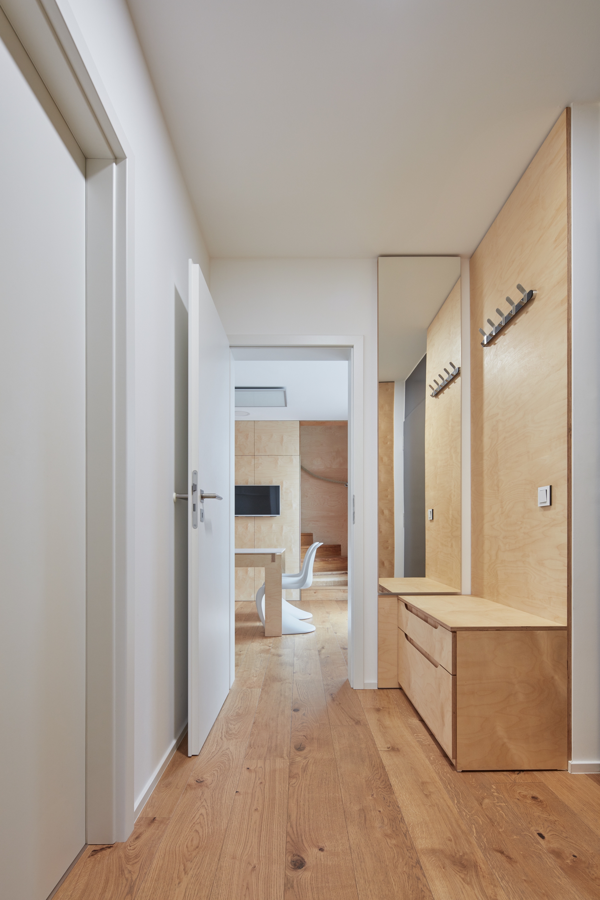 The “Sixty-one” conceptually continues along the lines of the inter-war theories of Karel Teige about minimal apartments. Now, several years after presenting No. 001 on Wenceslas square, I find inspiration in the 2-story Baťa half and quarter-houses in Zlín. I was inspired while spending a night in a half-house in Zlín. The “Sixty-one” comes close to Baťa houses in its scale and organization of the interior spaces. The approach to facade division and proportions of window openings may remind one of Corbusier’s houses in the residential area in Pessac. However, the current trend is moving in the direction of mobile and economic housing: it is noticeable in the famous project of the “nomad” apartment cell Loftcube by the German designer Werner Aisslinger.
