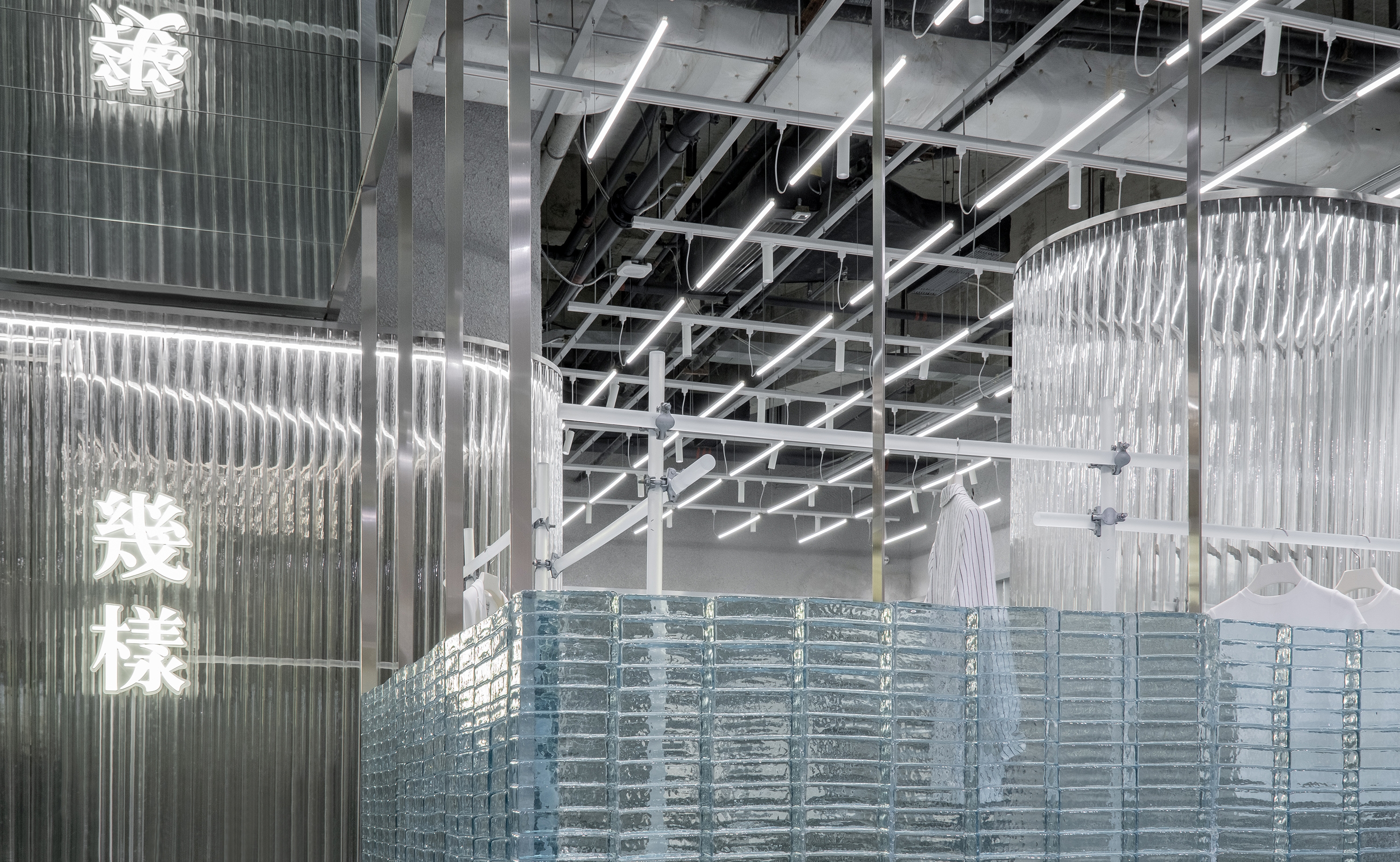 Geijoeng, a Chinese minimalist womenswear brand recently opened its doors in Coastal City. The interior design explores the interactivity between materials, light transmission, refraction, reflection, and fabric.