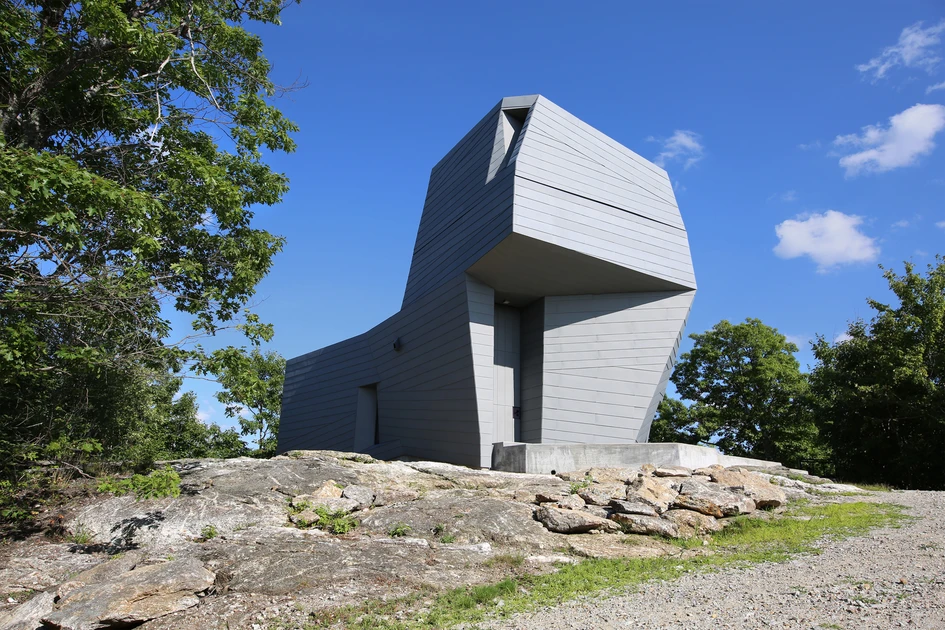 This private astronomical observatory is located on a remote mountain summit in central New Hampshire. The site is characterized by granite outcroppings and is situated at the center of a three-mile radius “dark” landscape with very little light pollution to obstruct astronomical viewing. Gemma’s design rejects a traditional dome in favor of a synthesized architectural form that maximizes usable space and responds to the stark geographic context.