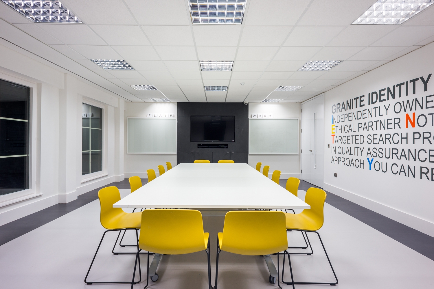 Granite Search & Selection approached Furniss & May to create a workplace with a difference. The recruitment agency for the construction industry, had expanded quickly and wanted a space to attract new staff and inspire clients.