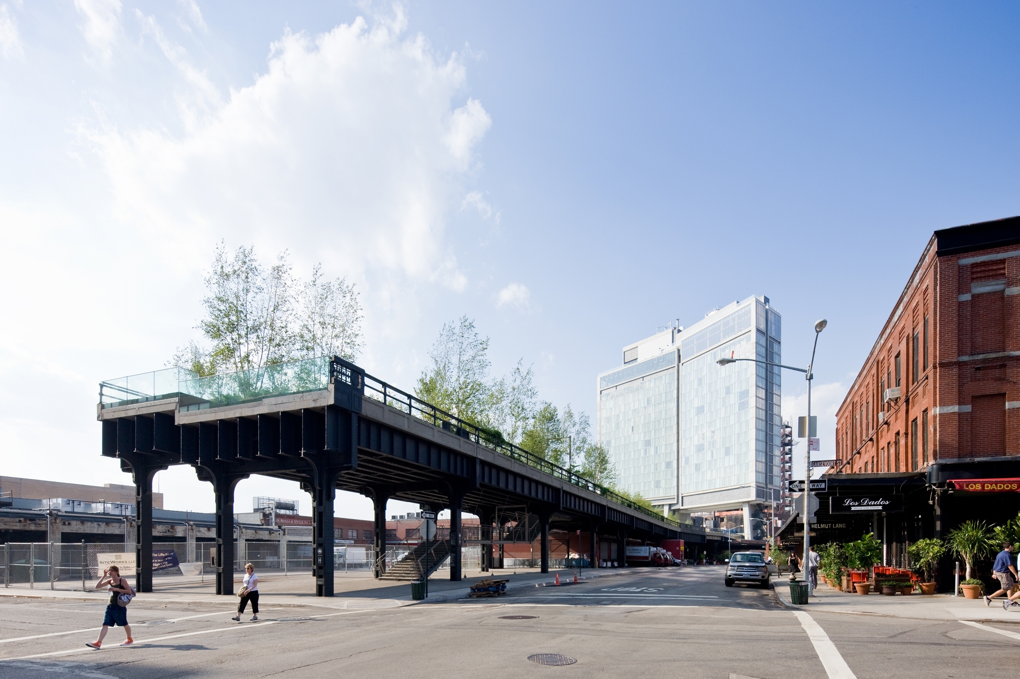 The High Line, in collaboration with James Corner Field Operations and Piet Oudolf, is a 1.5–mile long public park built on an abandoned elevated railroad stretching from the Meatpacking District to the Hudson Rail Yards in Manhattan. Inspired by the melancholic, unruly beauty of this postindustrial ruin, where nature has reclaimed a once vital piece of urban infrastructure, the new park interprets its inheritance. It translates the biodiversity that took root after it fell into ruin in a string of site–specific urban microclimates along the stretch of railway that include sunny, shady, wet, dry, windy, and sheltered spaces.
