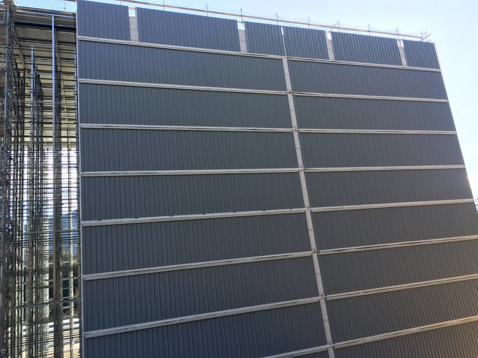 Für das Projekt wurde die Vorfertigung der Bauelemente neu gedacht. Die DOMICO-Elemente für die Wand wurden bereits werkseitig mit Fassadenbekleidung produziert. Die so geschaffene Einheit aus Wand und Fassade konnte im Eiltempo an der Baustelle zusammengefügt werden, lediglich die Geschoßtrennprofile wurden an Ort und Stelle eingehängt.