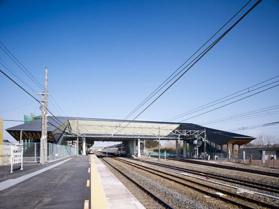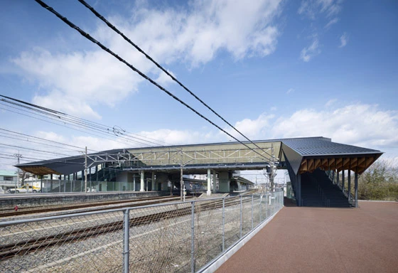 Concept: The starting point was to open the east exit of Hoshakuji Station. We aimed at connecting the west and east sides of the station, which had been divided by the railroad. It eventually meant the link between the west and the east of the town of Takanezawa, and between the station and Chokkura Plaza & Shelters, which we designed in the east exit area. It is not a design of a station as a box, but is as an aperture. The aperture starts at its ‘neighbor’, Chokkura Plaza. We first decided to preserve the old warehouse of Oya stone that had existed in the area. Then we took advantage of pores in Oya stone, and used them in the new structural system, in which steel frame and Oya stone are combined diagonally, and added the system to the warehouse. Following the design of this ‘neighbor’, we extended this diagonal skin to the other ‘pore’ or ‘aperture’, which is the station. By such extension and connection, we attempted to link not only the station’s west exit and east exit, but also the station and its location.