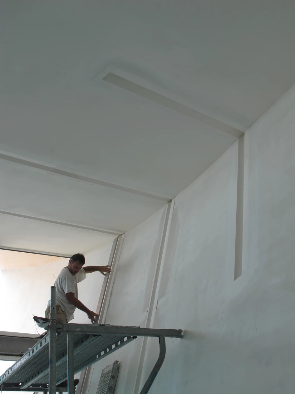 The use of plaster enables a perfect and invisible jointing with plasterboard.