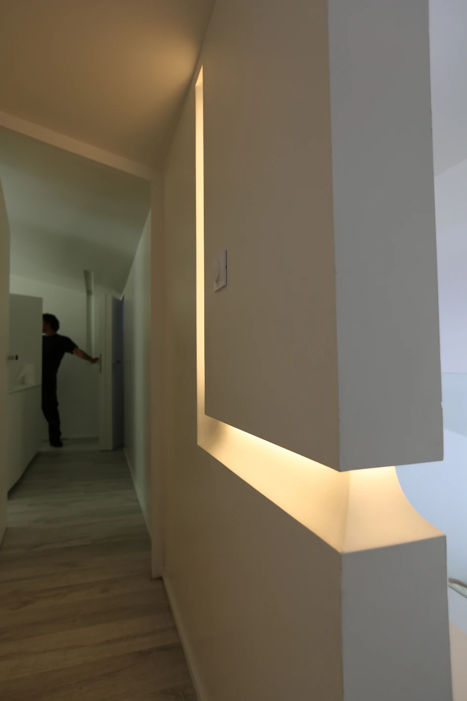 Profiles made of glass-reinforced plaster and produced by Atelier Sedap in France exclusively with plaster of Paris (high quality plaster), MiniBlade and MicroBlade Circles are designed to be easily recessed in plasterboard walls and ceilings, thanks to an optimal shallowness (55mm).