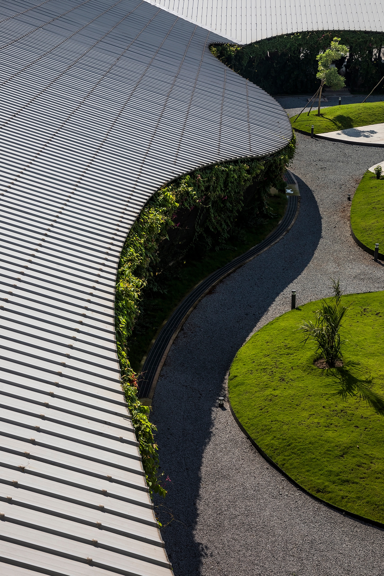 The intelligent distribution of work spaces combined with the plantation façade and completely modular interior walls provide a comfortable working space, a pioneering initiative as Jakob Factory becomes the first project in Vietnam proposing completely naturally ventilated manufacturing halls.
