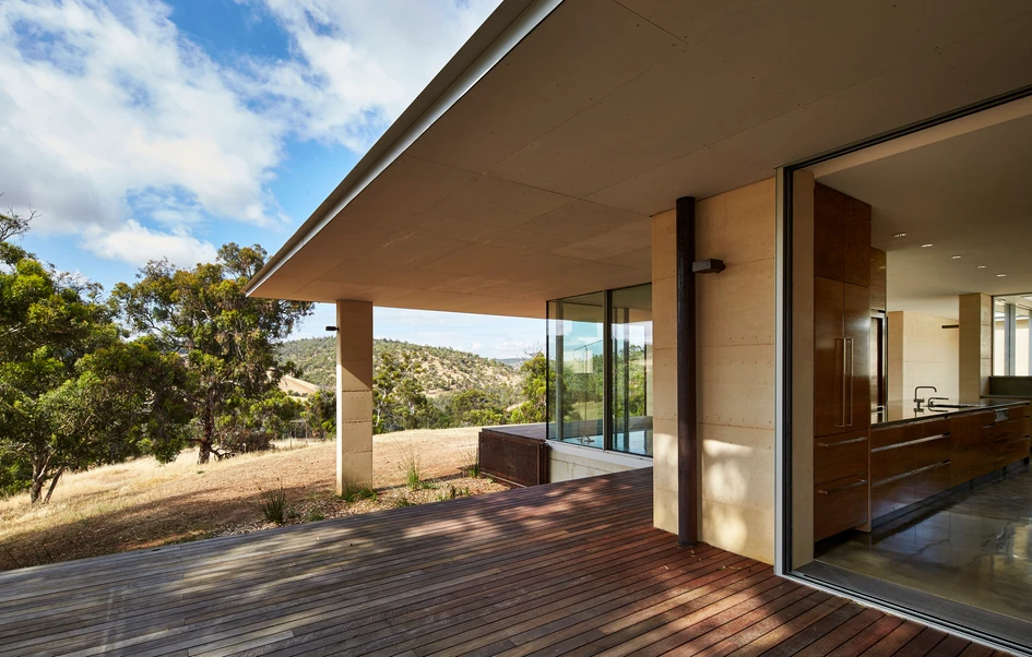 Located and hour and a half north of Perth in the Chittering valley. The landscape is a combination of cleared areas for farming and bushland. Gently rolling hills and the patch work of vegetation under the vast Western Australian sky provide a great context for the project. The climate is one of extremes, hot and dry in summer and cold and damp in winter.