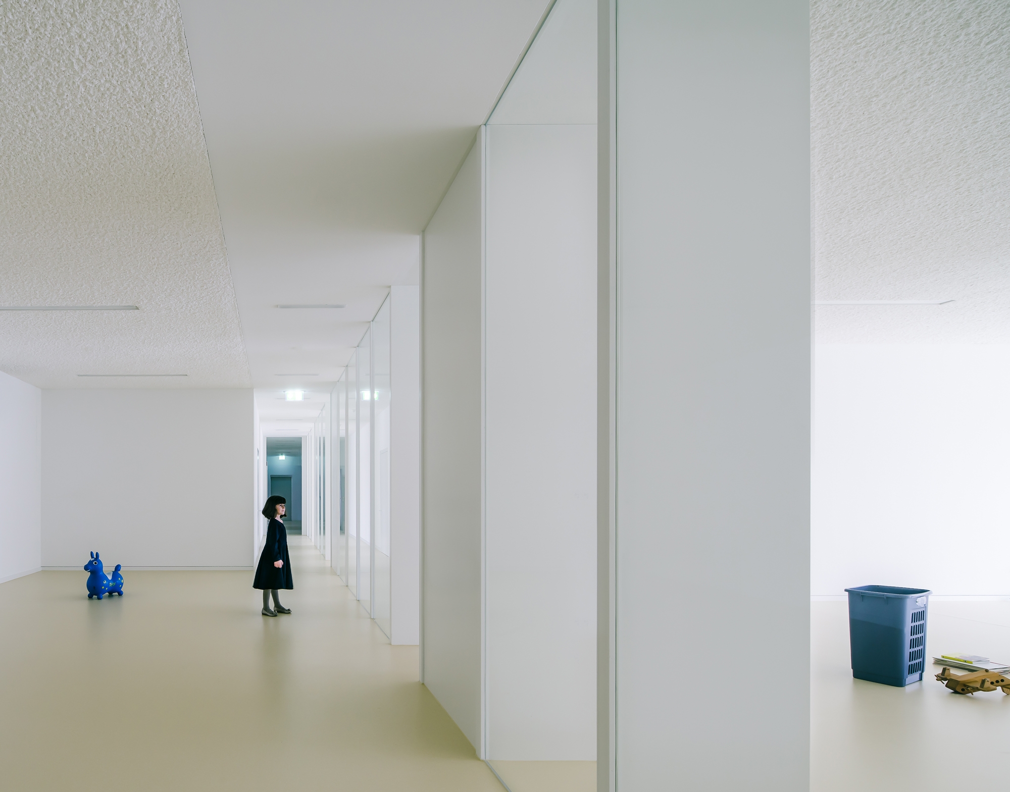 After the transformation a new window system and a maximal, clear room height brings daylight far into every room. In addition, the floor plan is organized in a way that allows a maximum of transparency between the different functions. The group rooms, the canteen, most part of the circulation and some services are therefore visually linked together by fixed glass elements. Beyond along the façade all group rooms are connected with a visual axis.