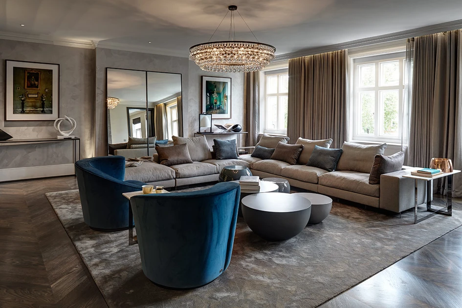 A luxurious contemporary lateral living space on a prestigious square through the refurbishment and integration of two separate Queen Anne apartments.