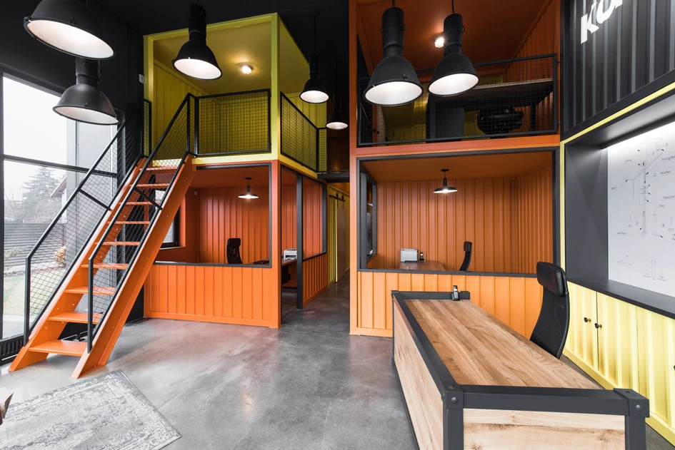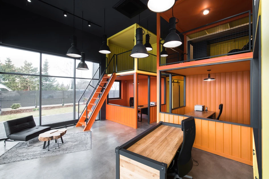 In the vicinity of Gdańsk port, in the town of Cieplewo, there is an office which surprises its visitors with a unique interior inspired by sea shipping containers. This industrial interior design was created by mode:lina™ architects.