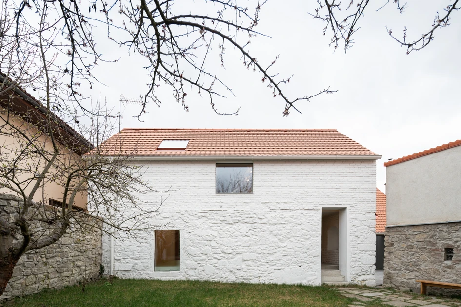 We perceive the reconstructed house as an alternative to suburban villas which are sometimes disproportionately cut out of our landscape. On a significantly smaller area, we are implementing a building program which includes a sufficiently large living room with an adjoining outdoor terrace, an attic with children's rooms and a playroom, a bedroom with its own bathroom, a garden with fruit trees, two garage spaces and a large workshop with a car lift.